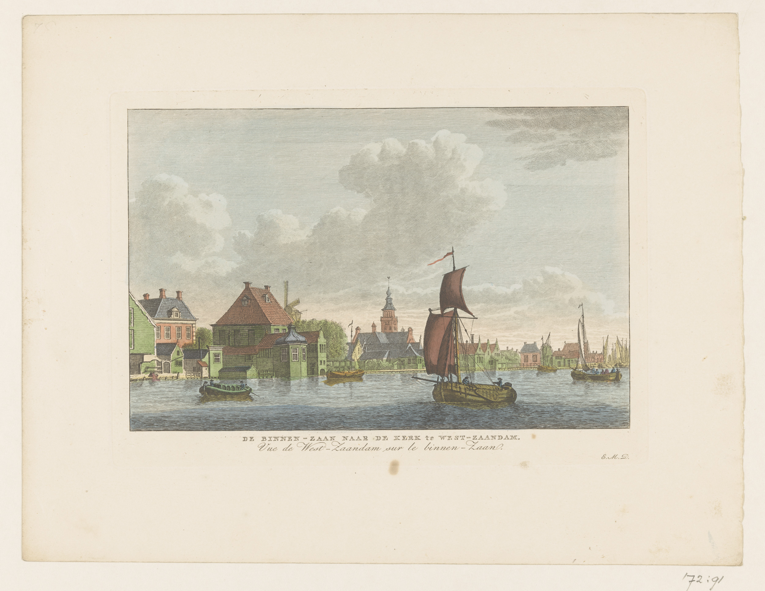 Gezicht op het dorp Westzaandam gezien over het water