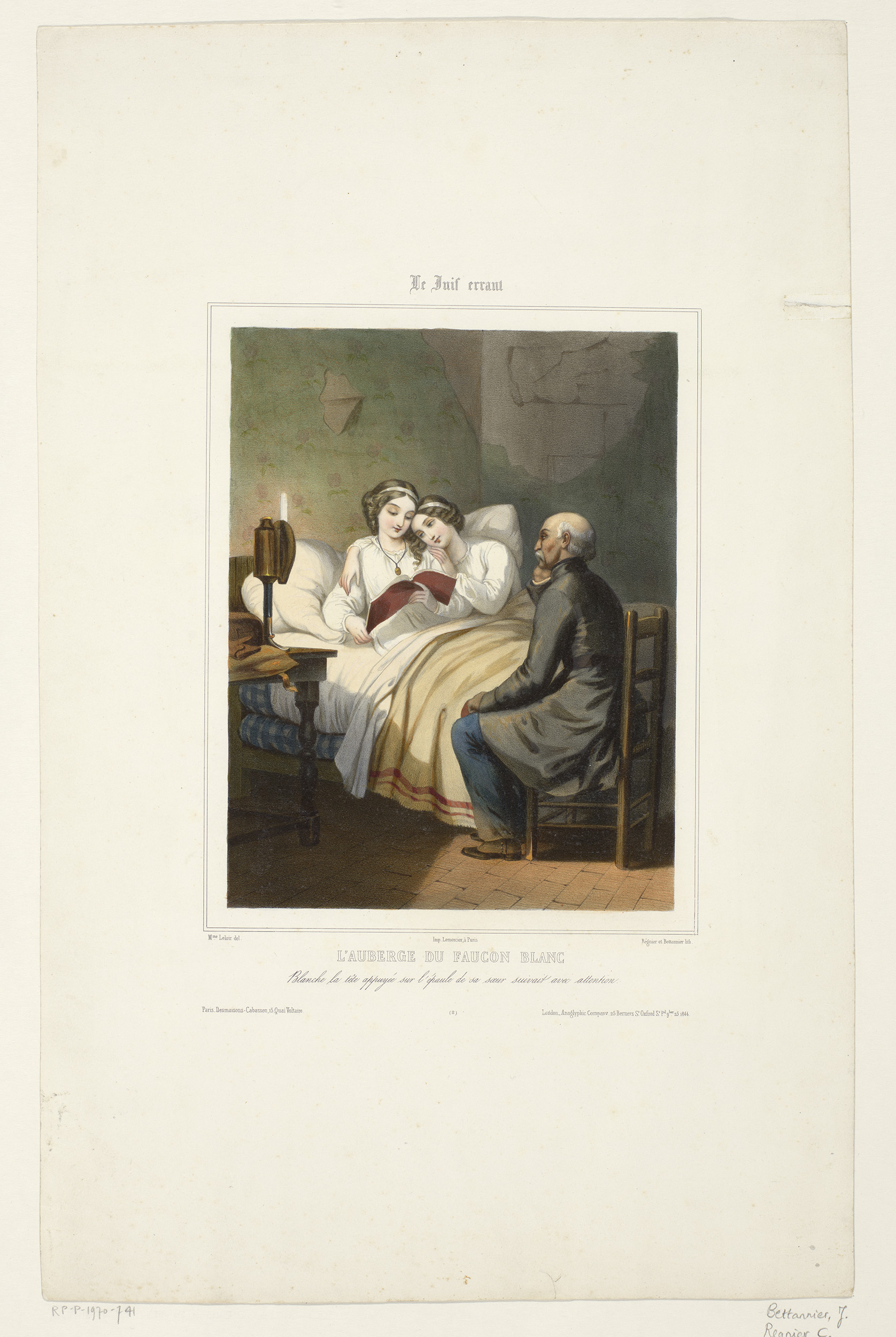 Weesmeisjes Rose en Blanche lezen een brief in het b...