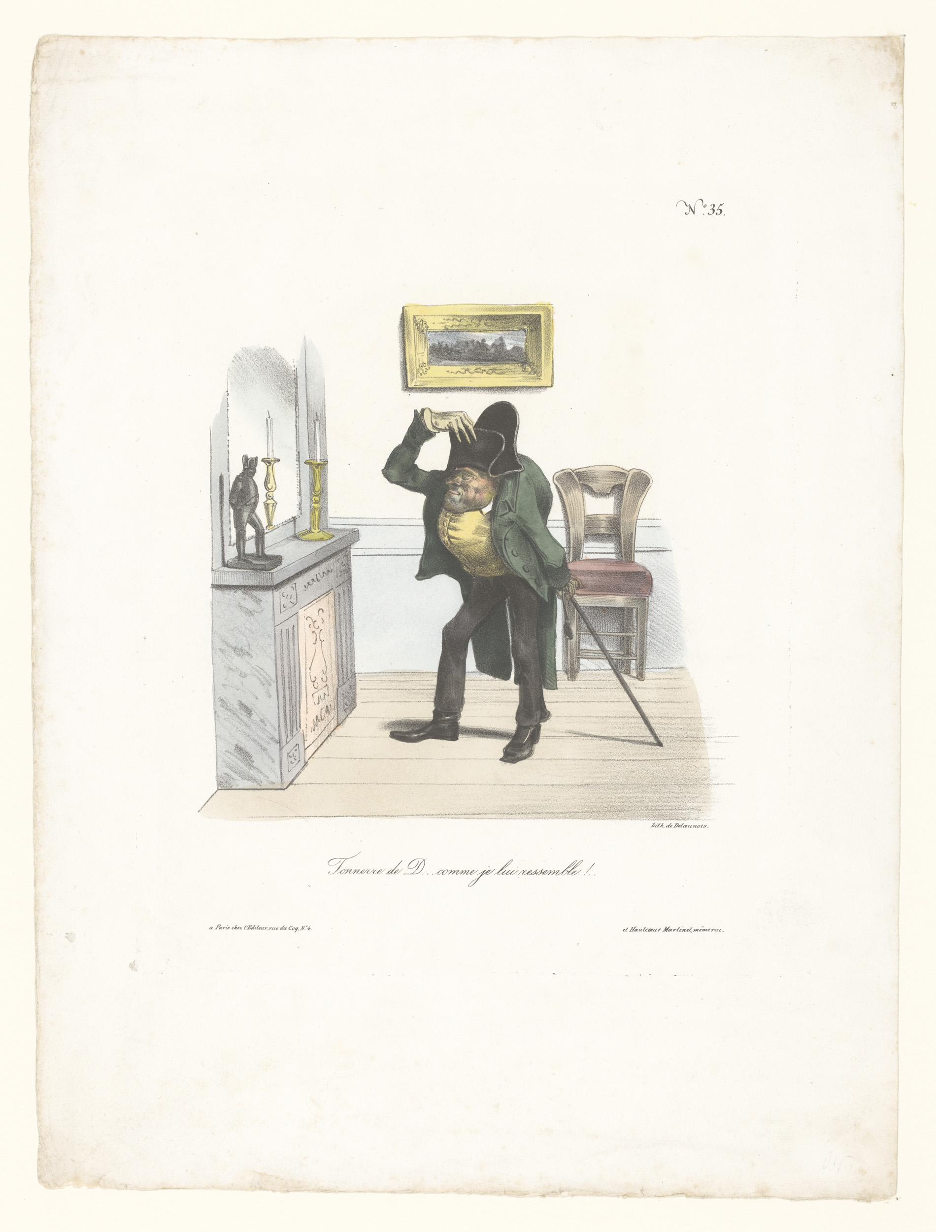 Karikatuur van een man die op Napoleon wil lijken
