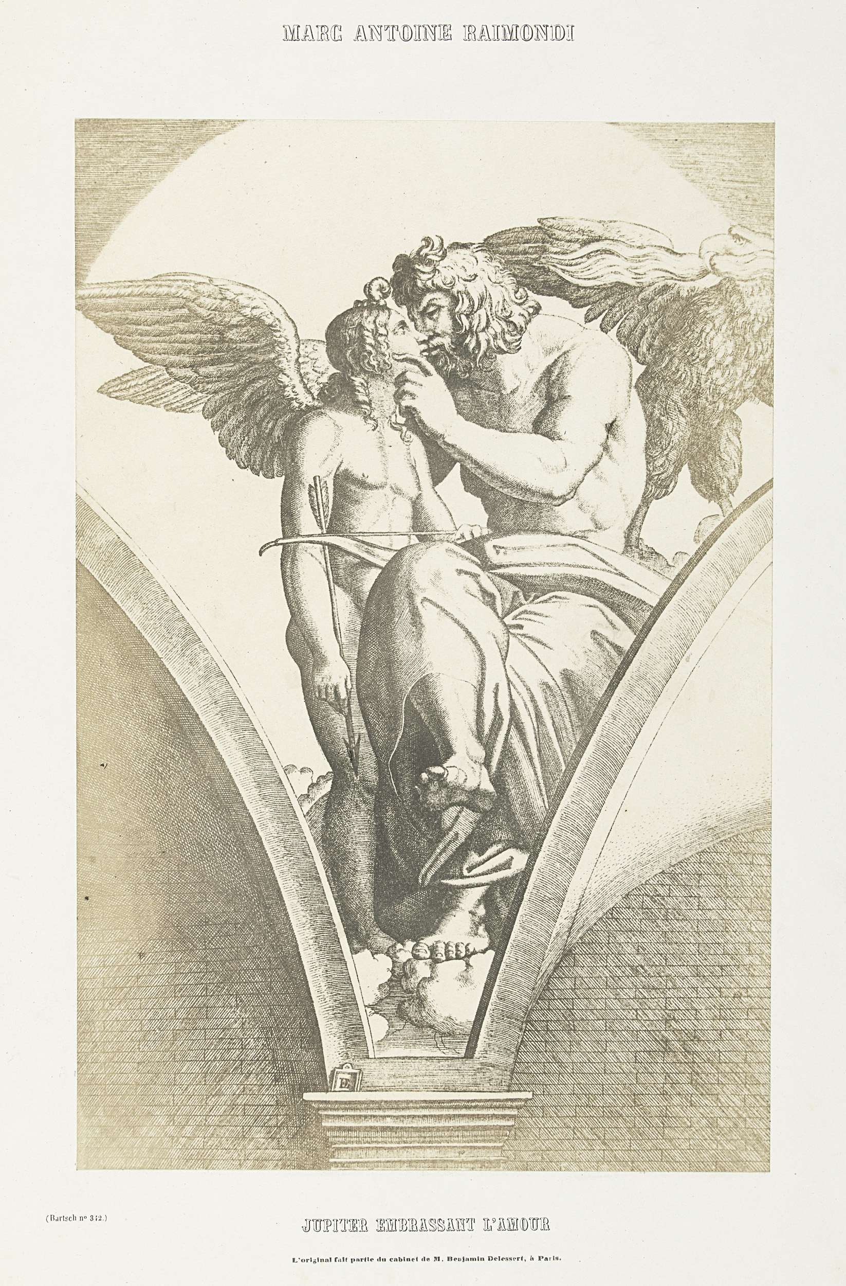 Fotoreproductie van de gravure 'Jupiter en Eros' doo...