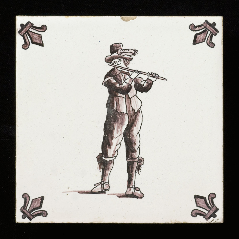 tegel van keramiek met tinglazuur, voorstellende: ru...