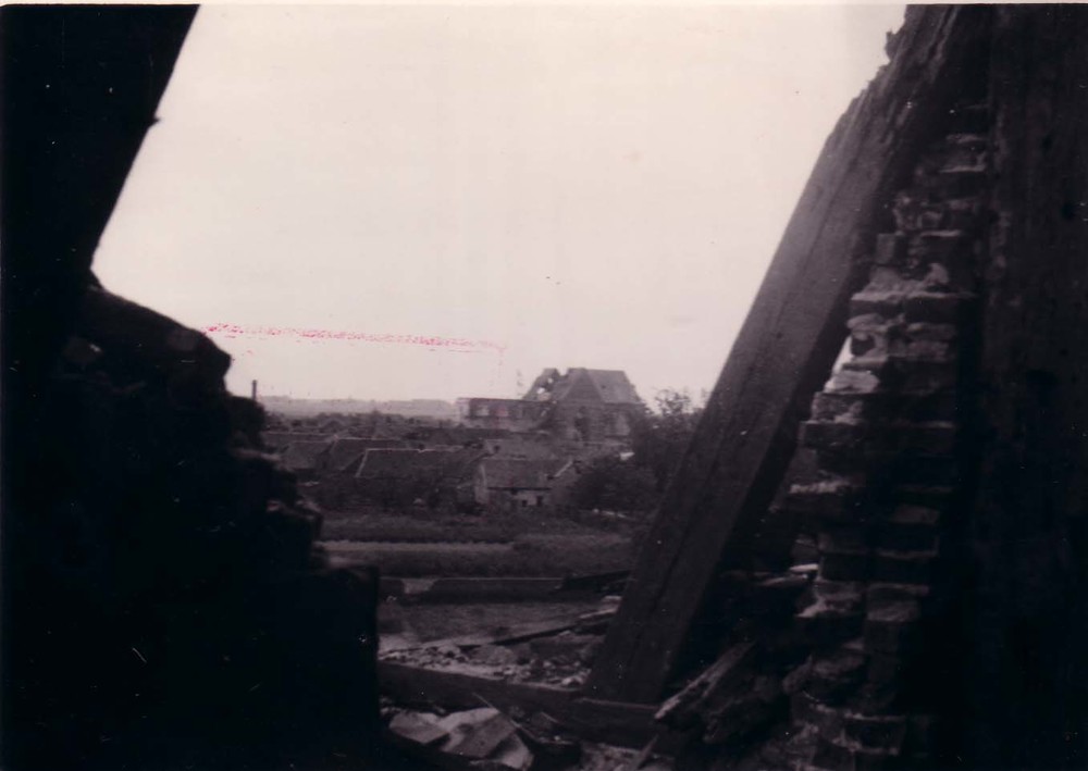 Oorlogsschade van Ammerzoden gezien vanaf het kasteel.