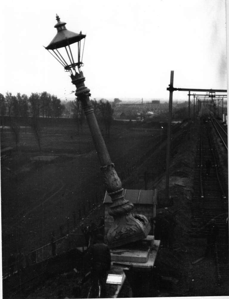 Foto, voorstellende de spoorbrug te Culemborg met au...
