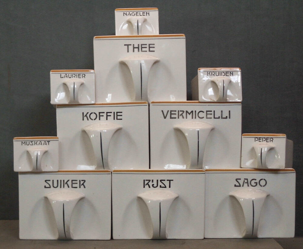 laden van aardewerk behorend bij een keukenrek, circ...