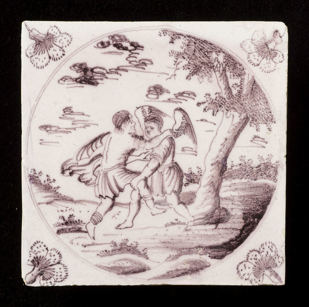 Tegel van keramiek met tinglazuur, voorstellende: Ja...