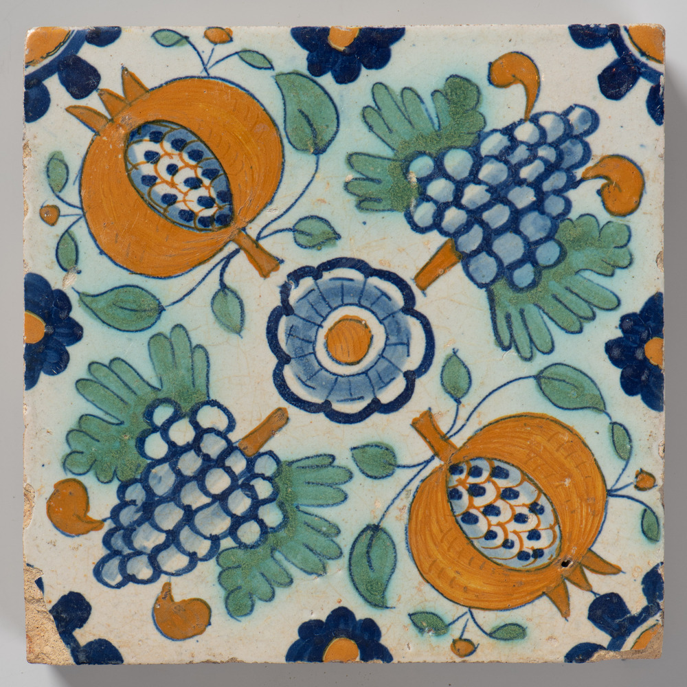 tegel van keramiek met tinglazuur, voorstellende: or...