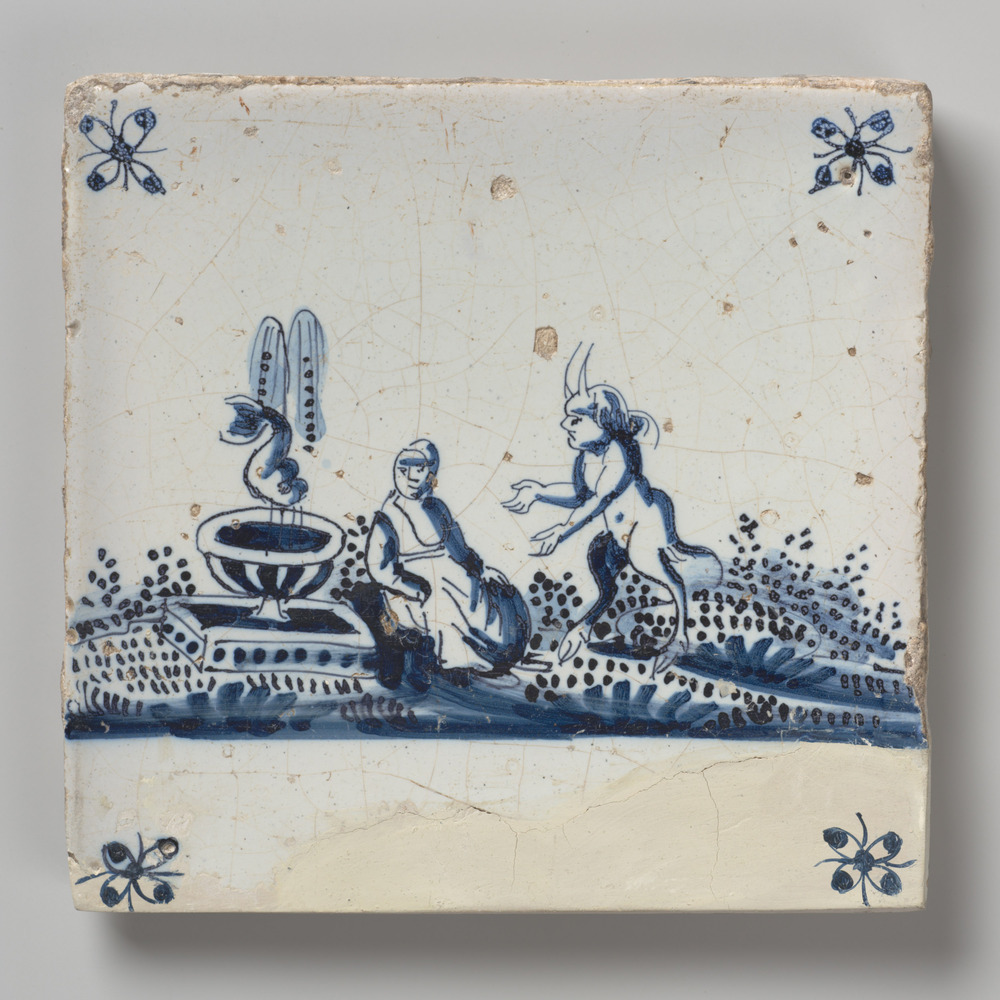 tegel van aardewerk met tinglazuur, voorstellende: s...