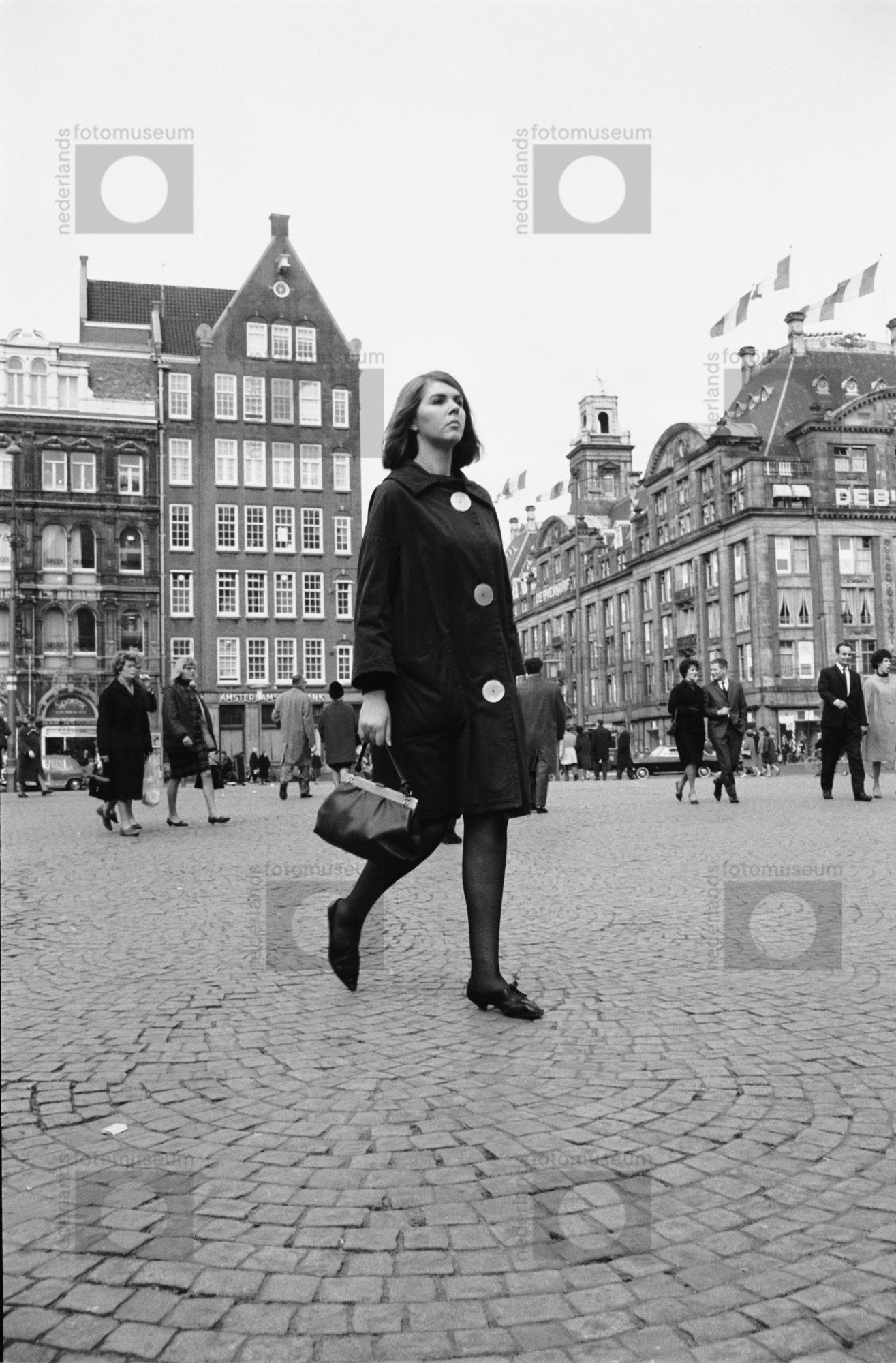 Amsterdam. Dam. Vrouw met handtas.