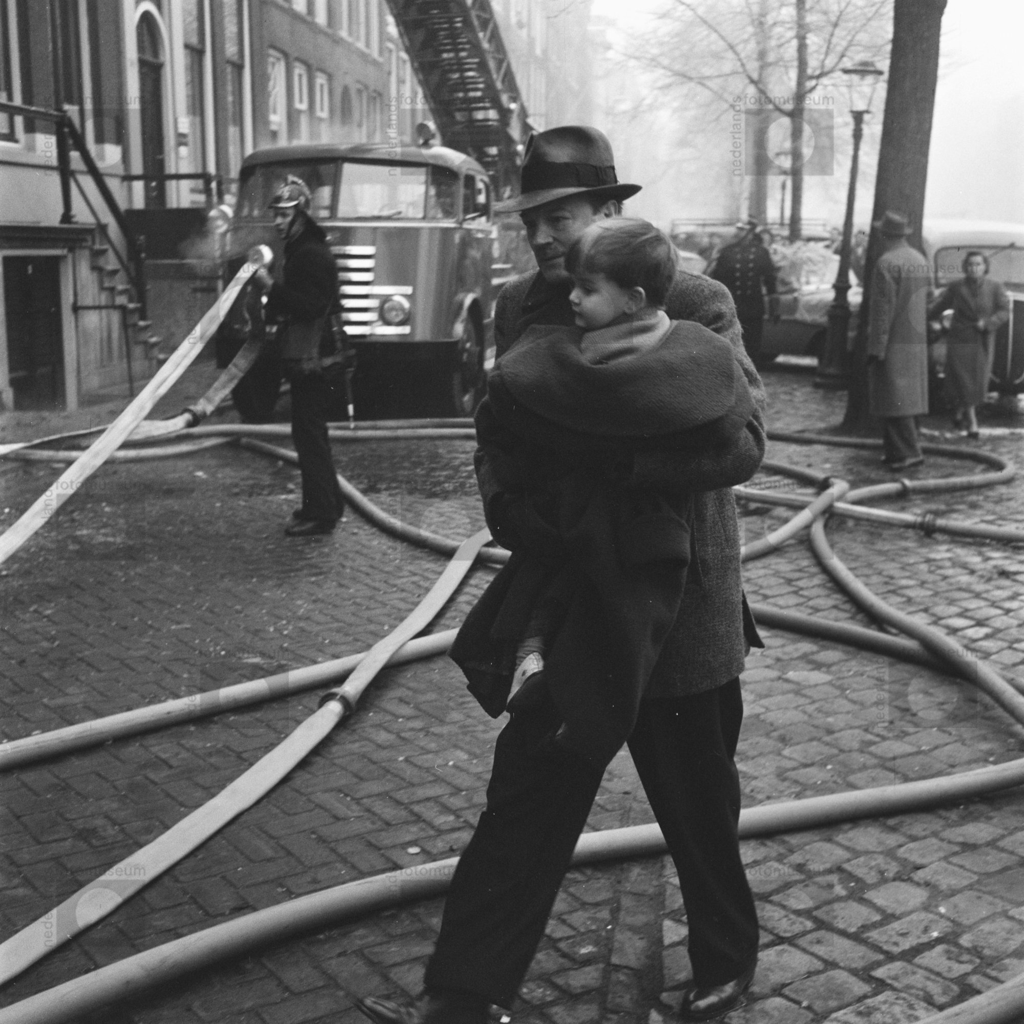 Amsterdam. Singel. Tijdens bluswerkzaamheden van de ...