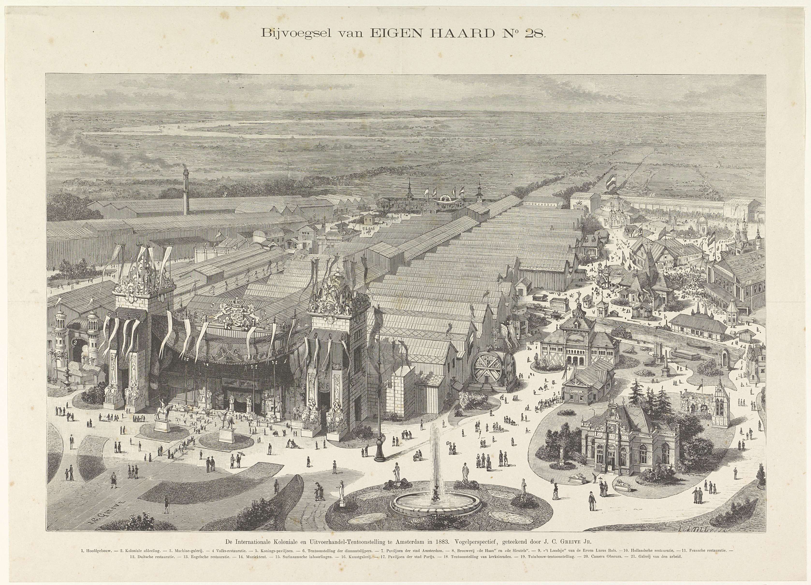 Gezicht op de Wereldtentoonstelling te Amsterdam, 1883