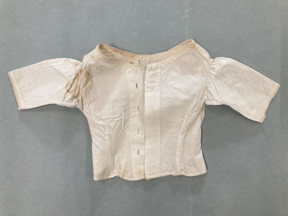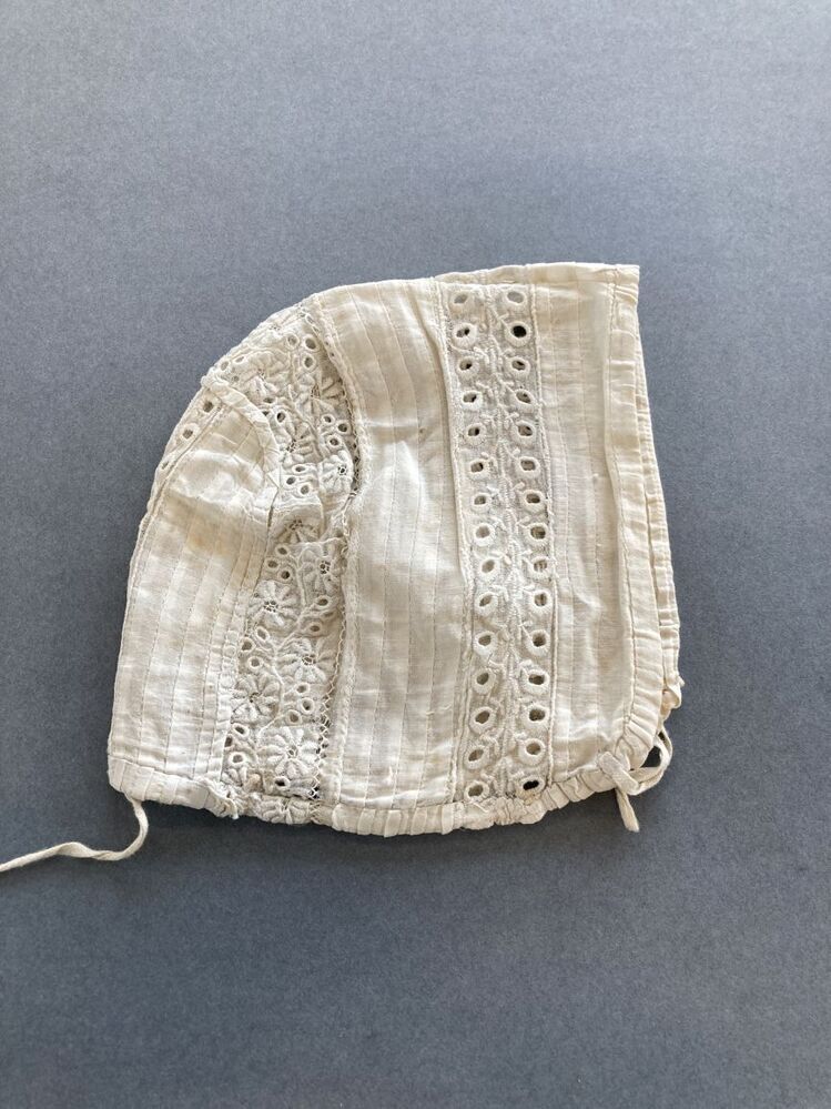 Kroplap van wit pique katoen langs de hals een gewev...