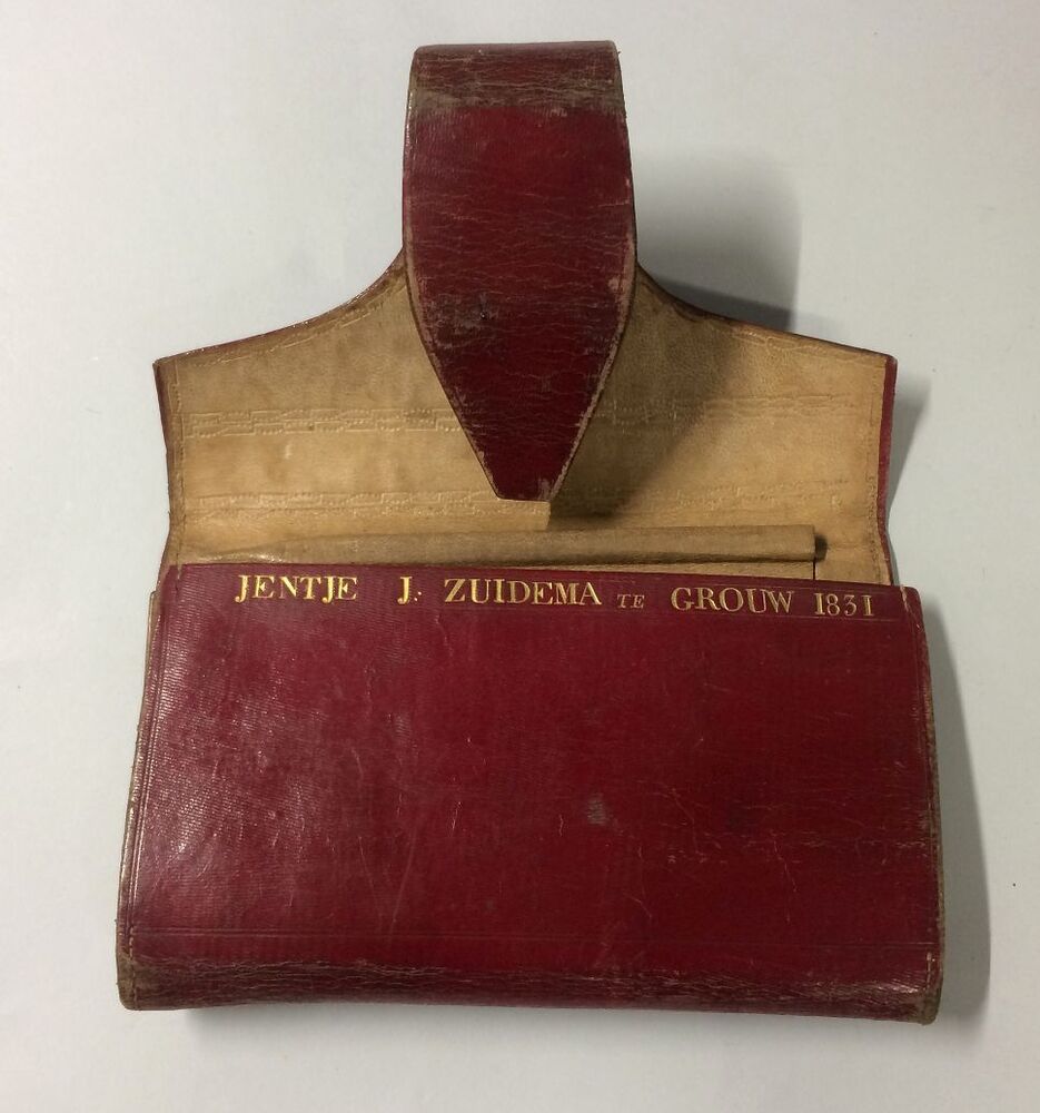 Portefeuille of brieventas van rood leer, ingeprent ...