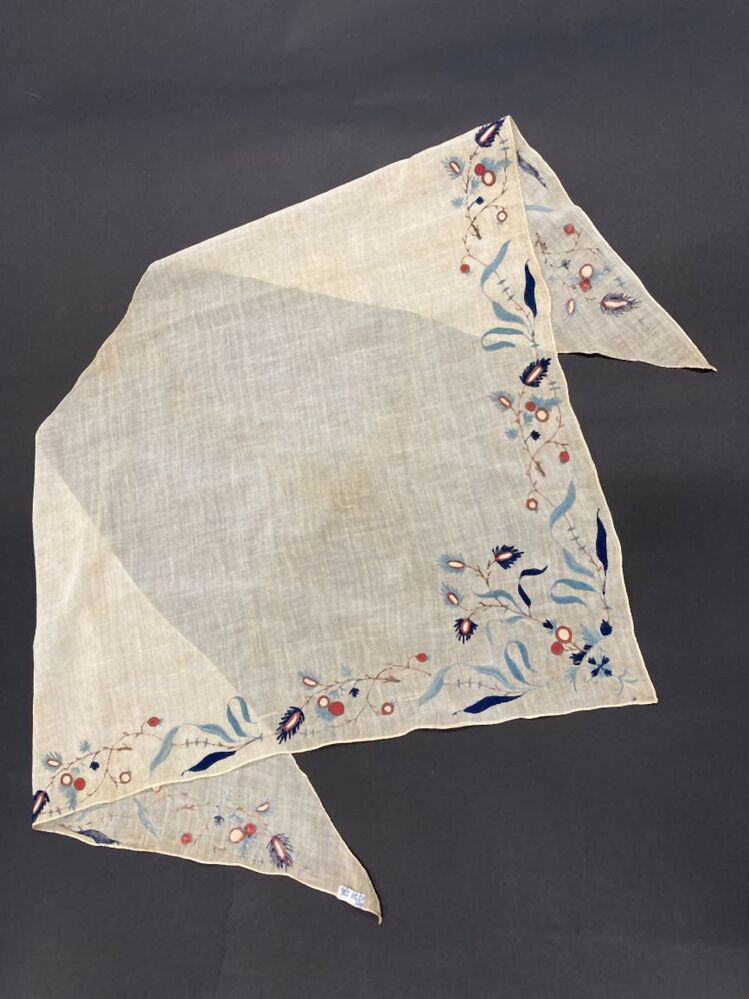 Fichu met veelkleurig tamboereerwerk, rand met bloem...