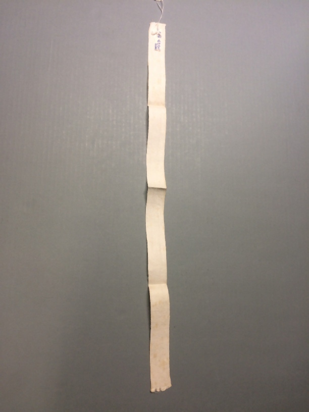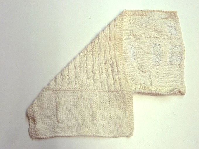 Breilap van wit katoen, verdeeld in 49 hokjes