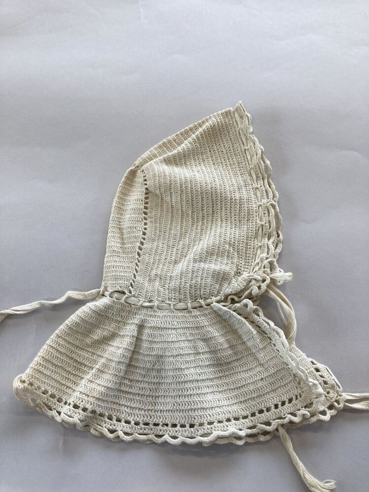 Tipmuts geheel gehaakt, bol met grote mazen, strook ...