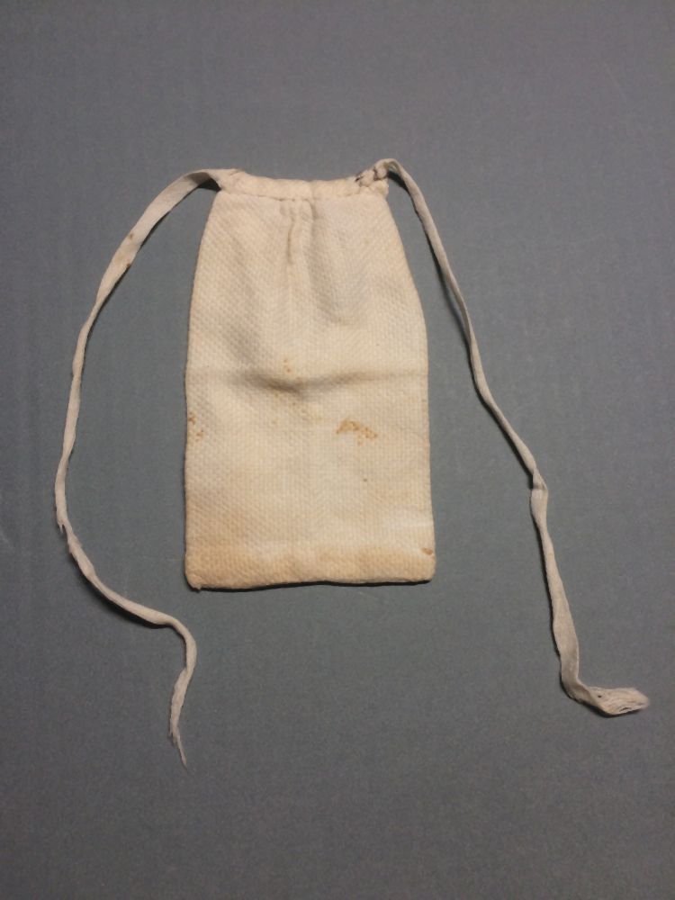 Maaslap van wit gebreid katoen, in devorm van een sok