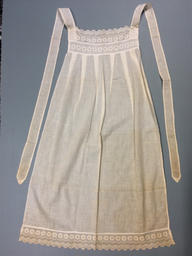 Schort met machinaal kant aan de bovenzijde net als ...