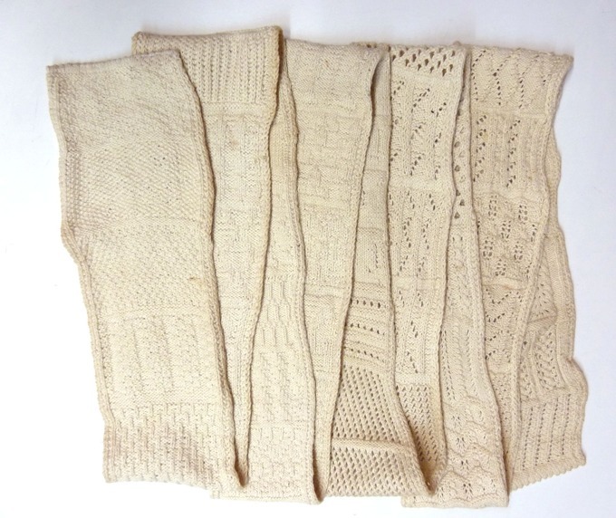 Paar gebreide wit katoenen kindermouwtjes in waaier ...