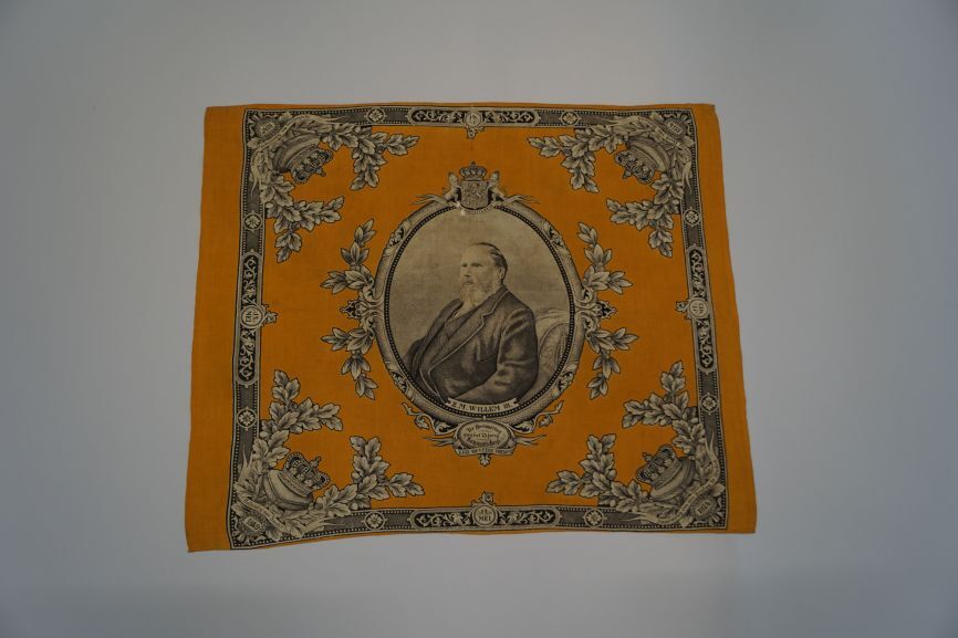 Gedenkdoek van bedrukt katoen in oranje en zwart met...