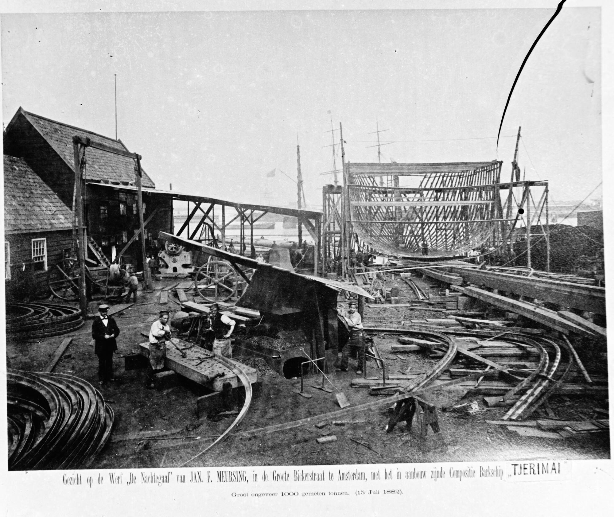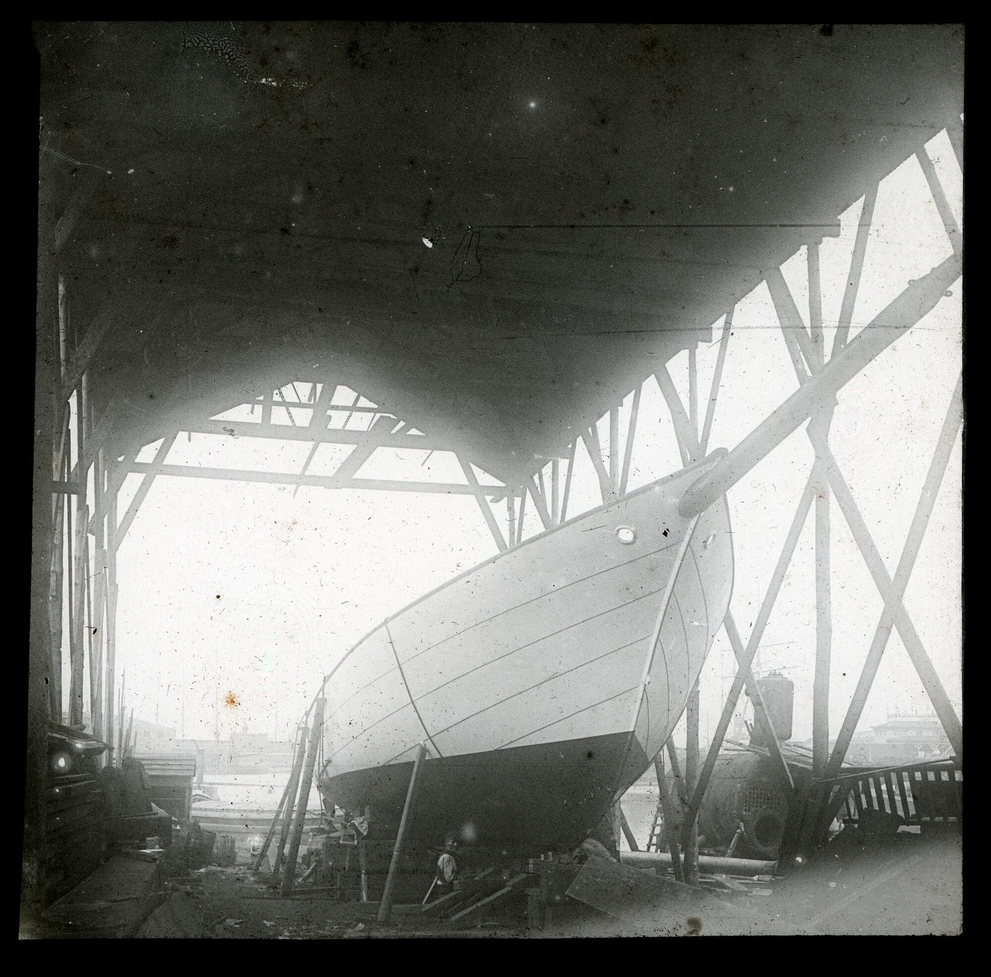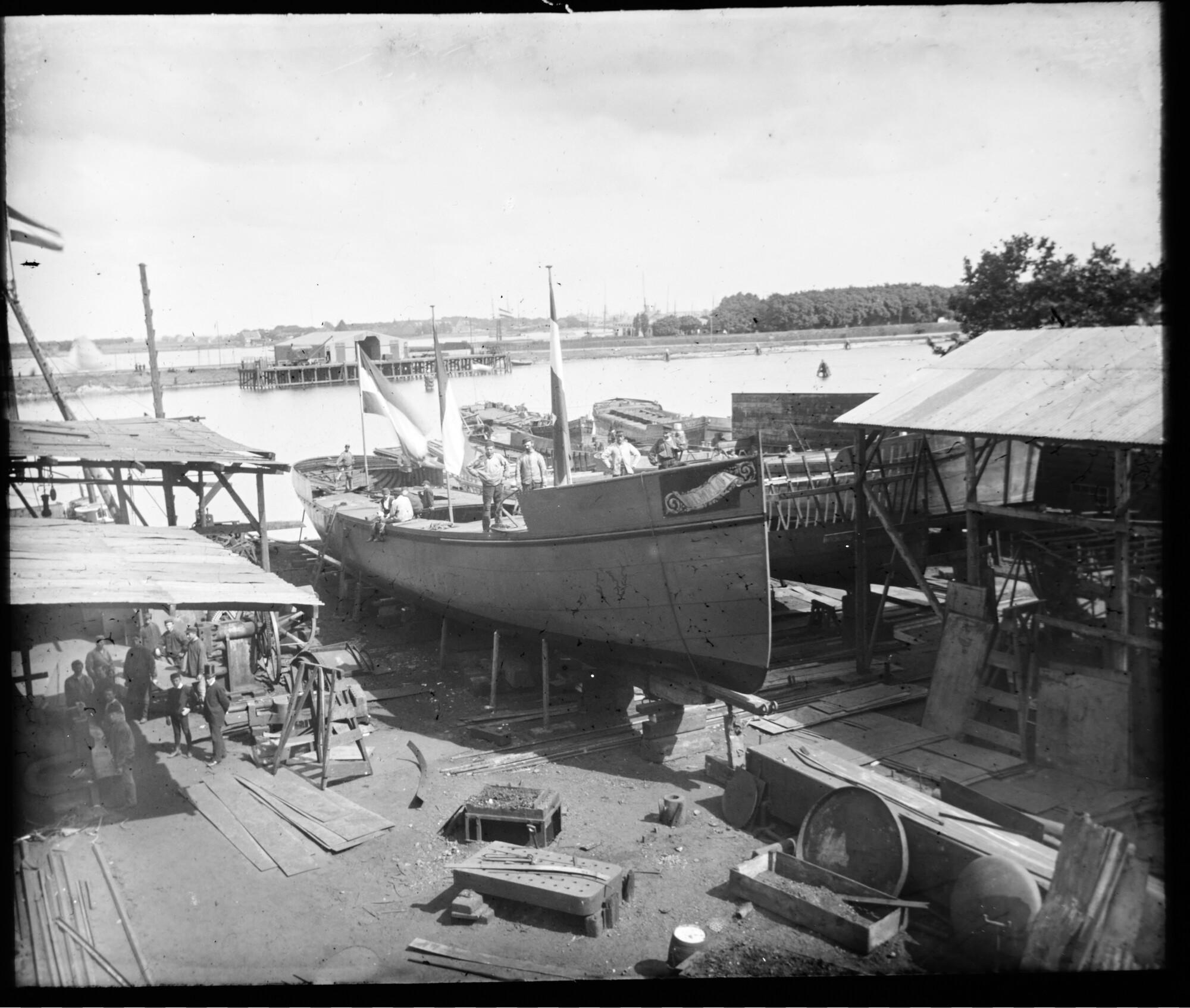 De bouw van het zeiljacht 'Freya' op de scheepswerf ...