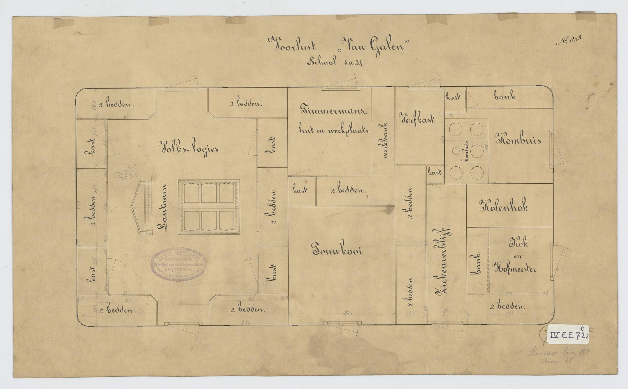 Indelingsplan van een centerboardjacht met hulpstoom...