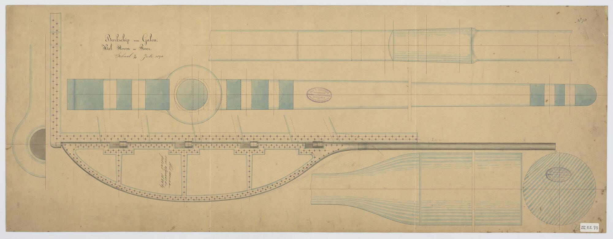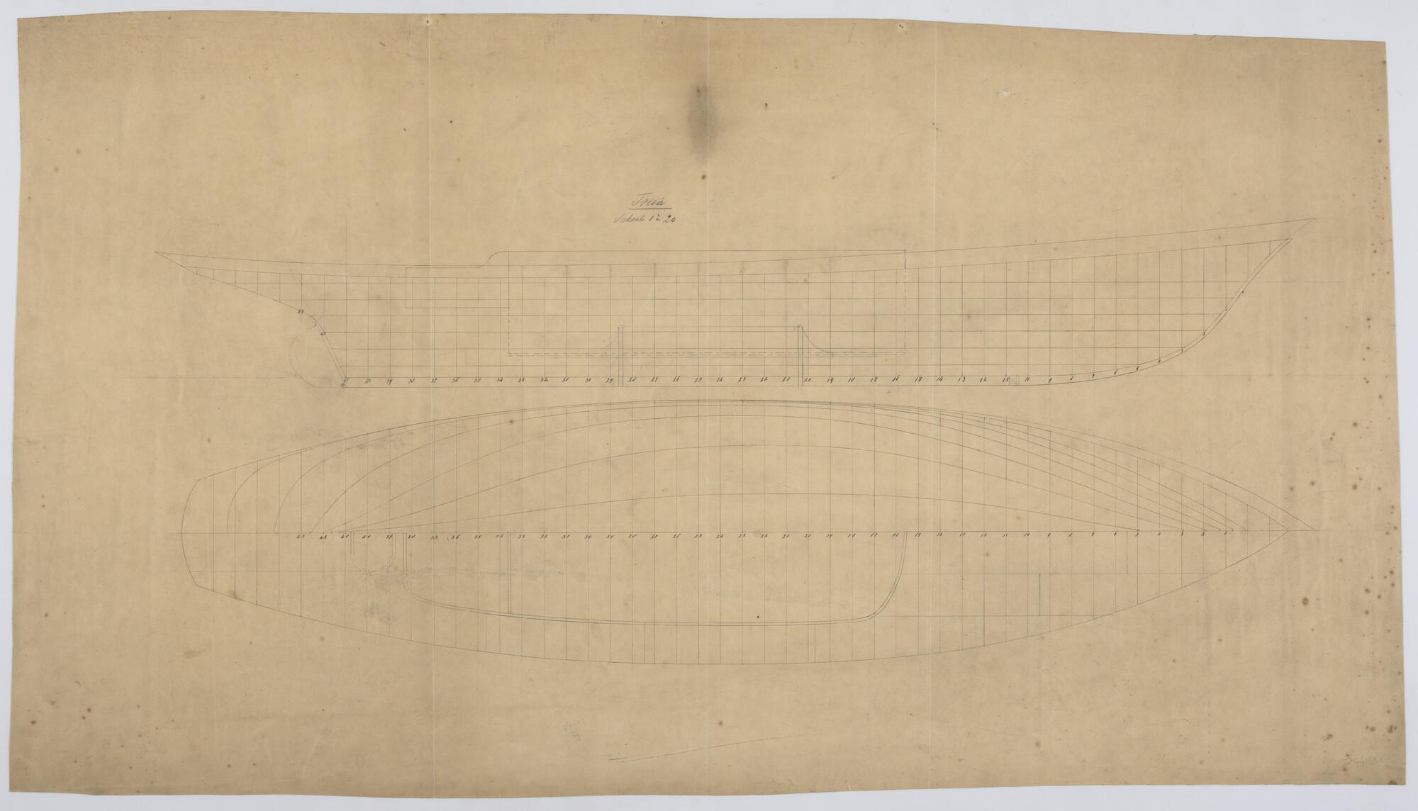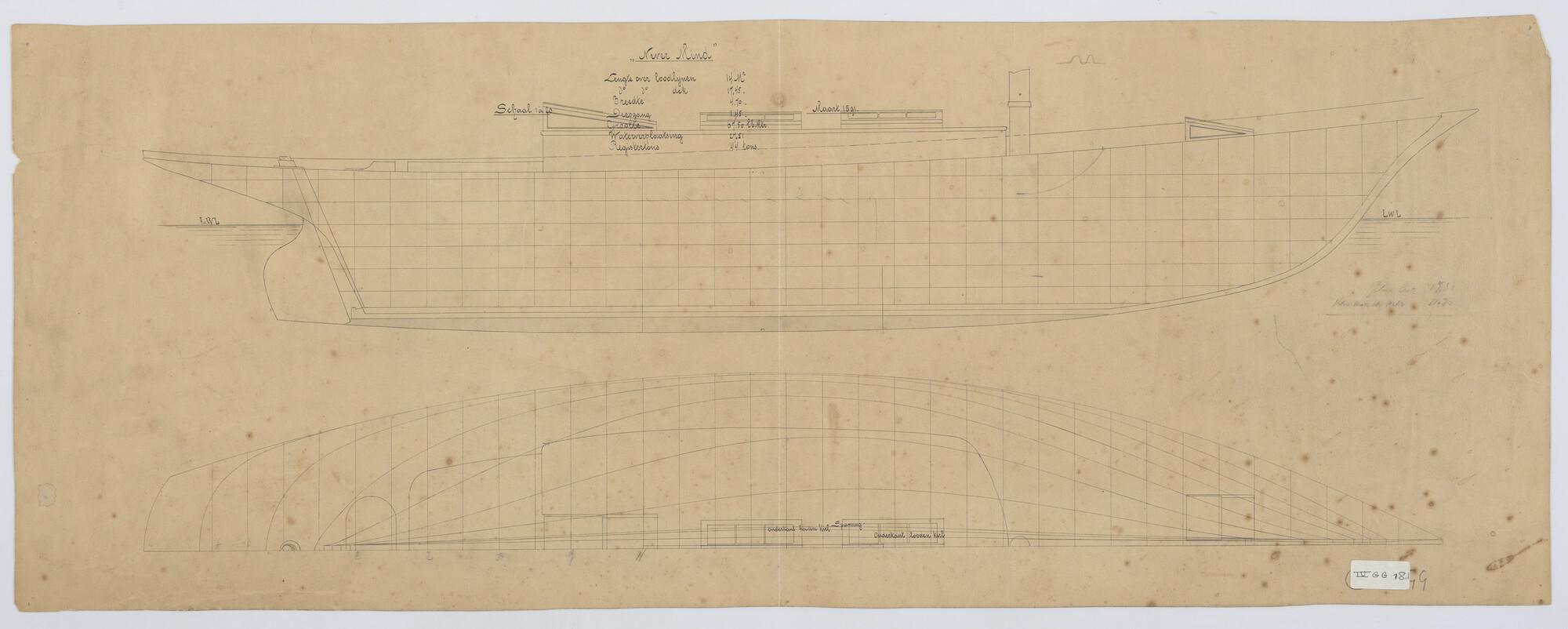 Lijnenplan 1852 en 1863 en tuigplan van het schoener...
