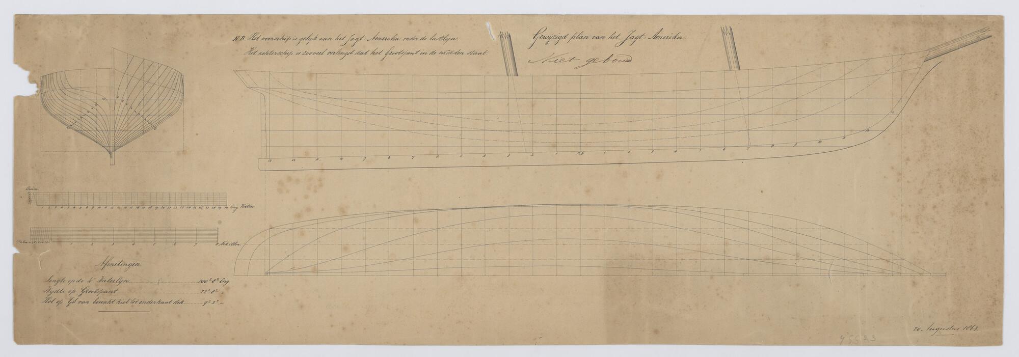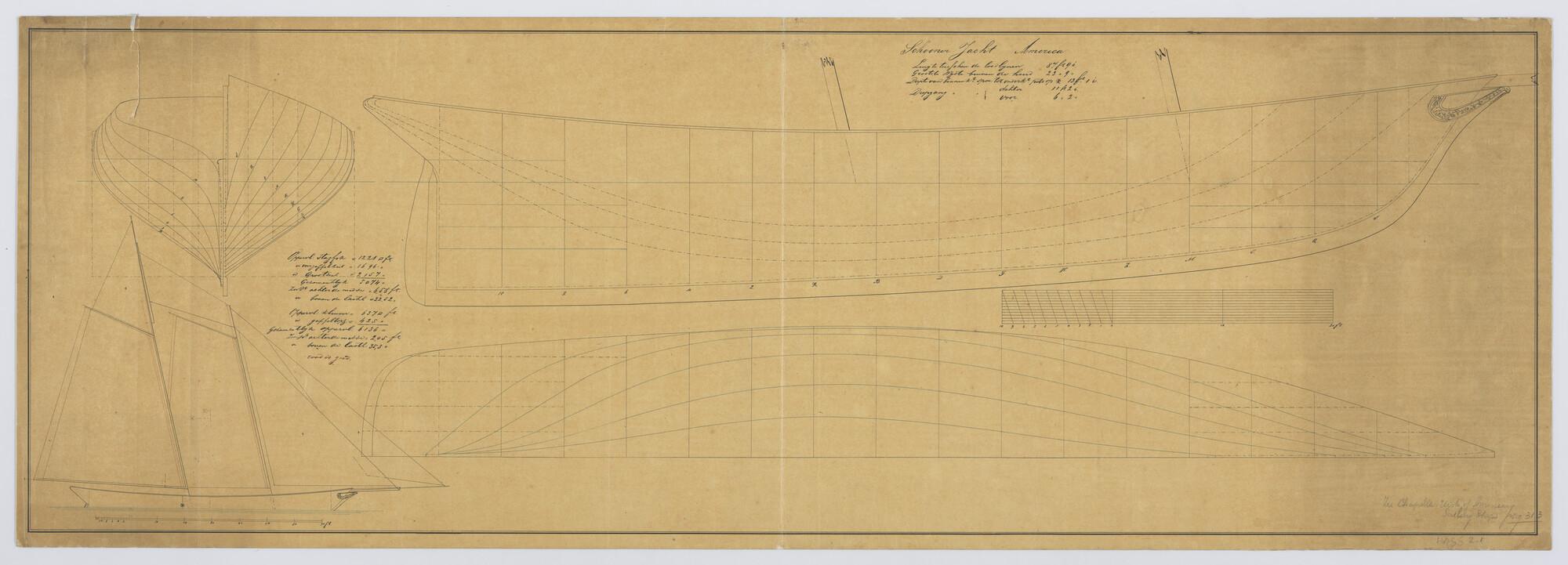 Algemeen plan van het schoenerjacht 'America', afm.:...