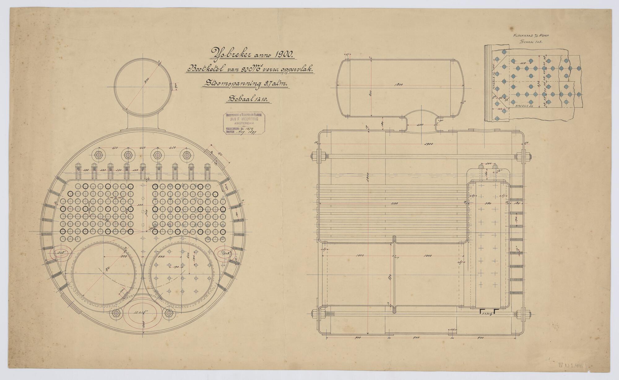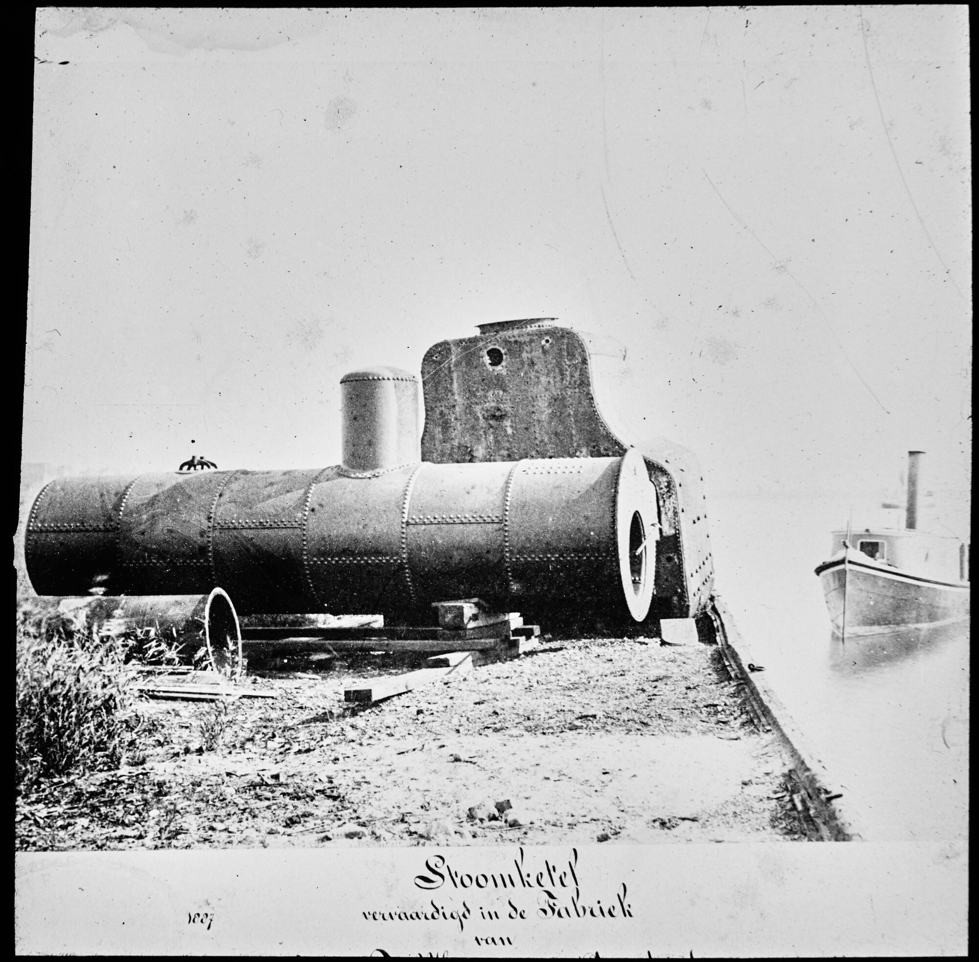 Lantaarnplaatje van ketelonderdelen voor het stoomge...