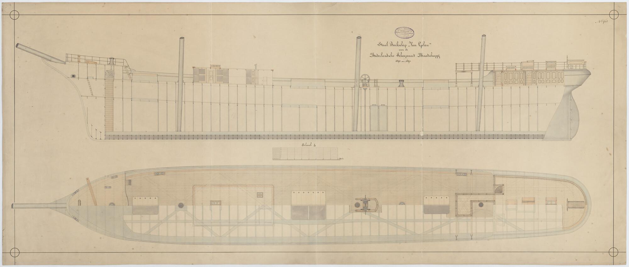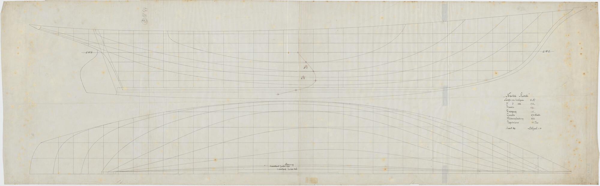 Verticale langsdoorsnede, bovenaanzicht, waterlijnen...
