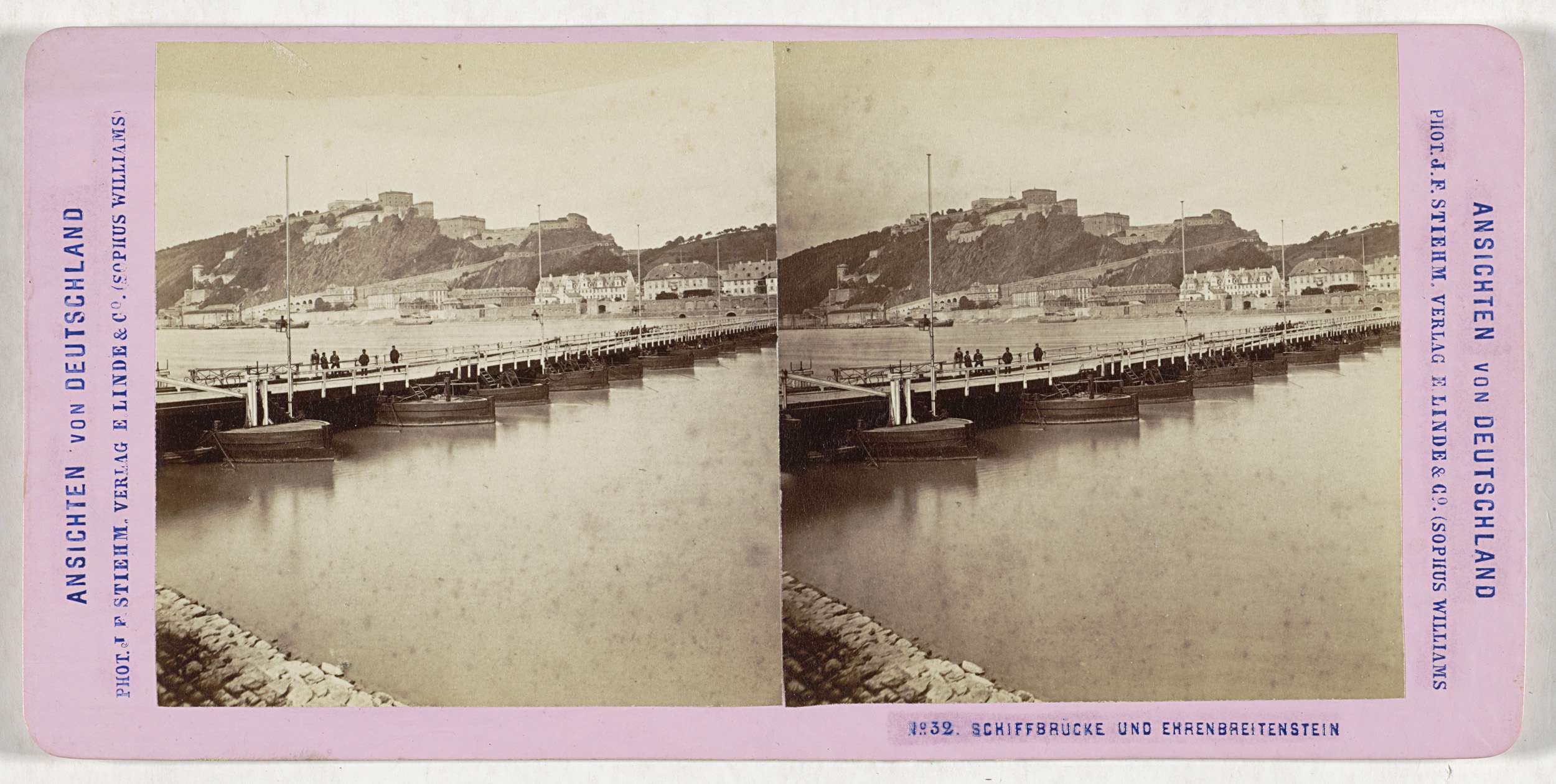 Scheepsbrug bij Koblenz, met Fort Ehrenbreitstein op...