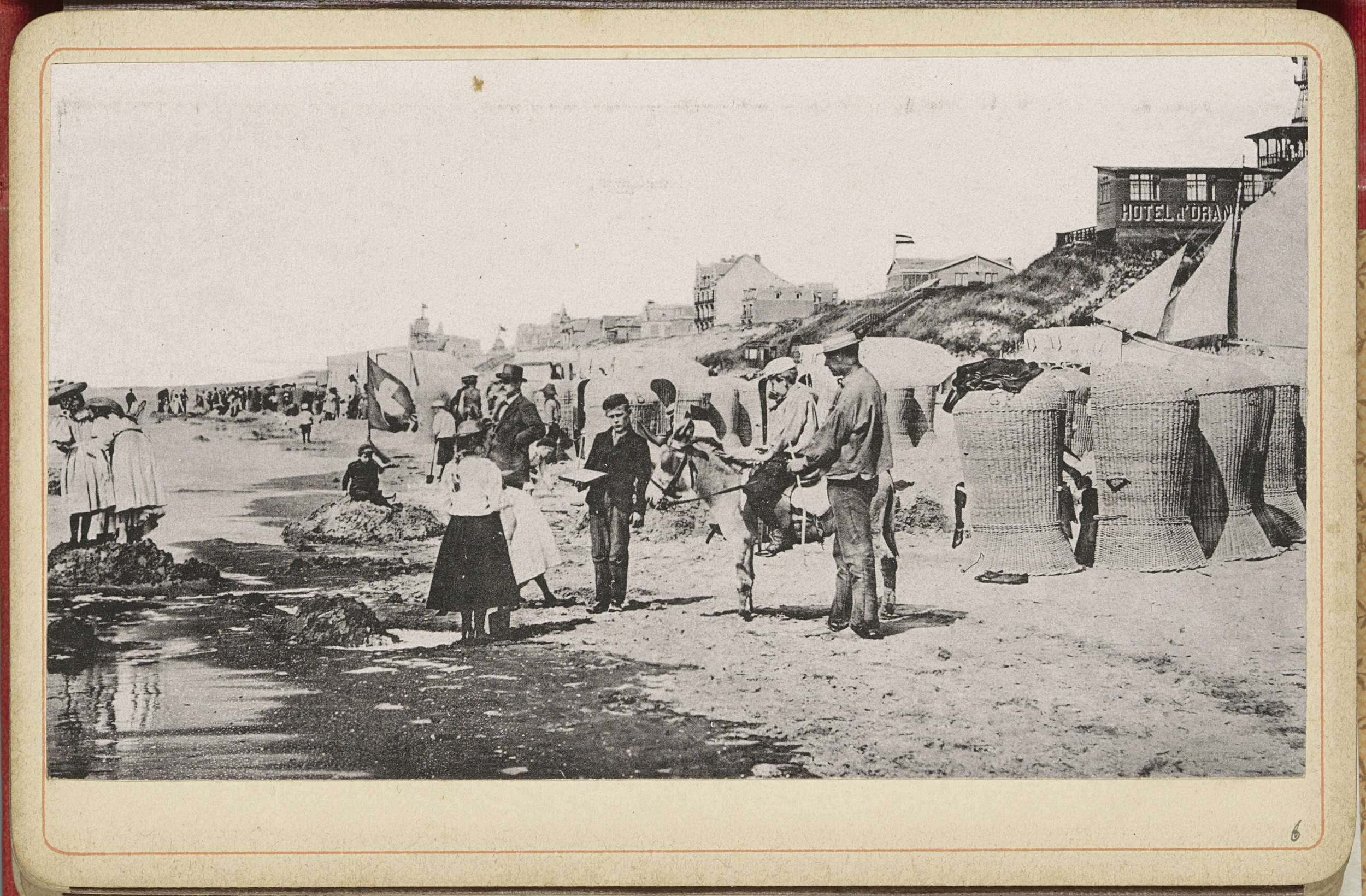 Mensen en ezel op het strand van Zandvoort