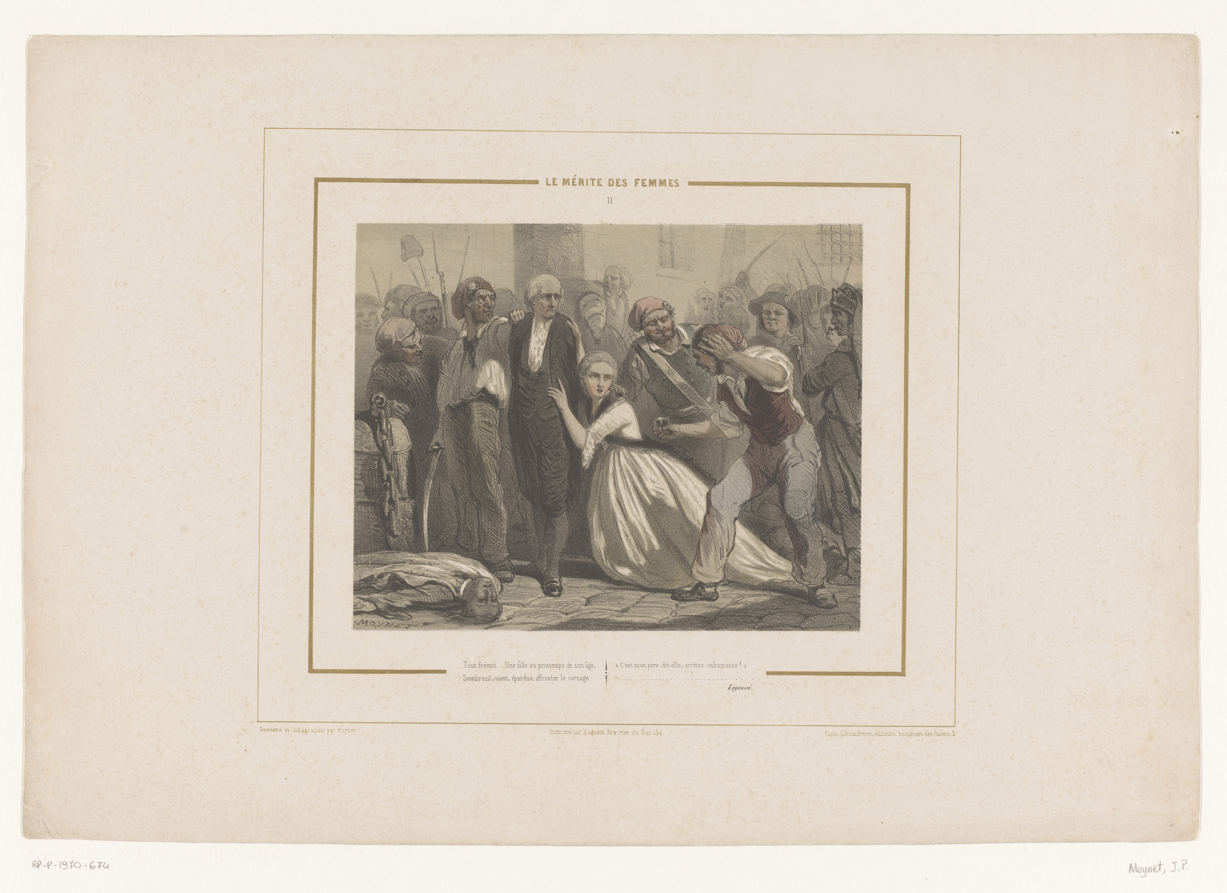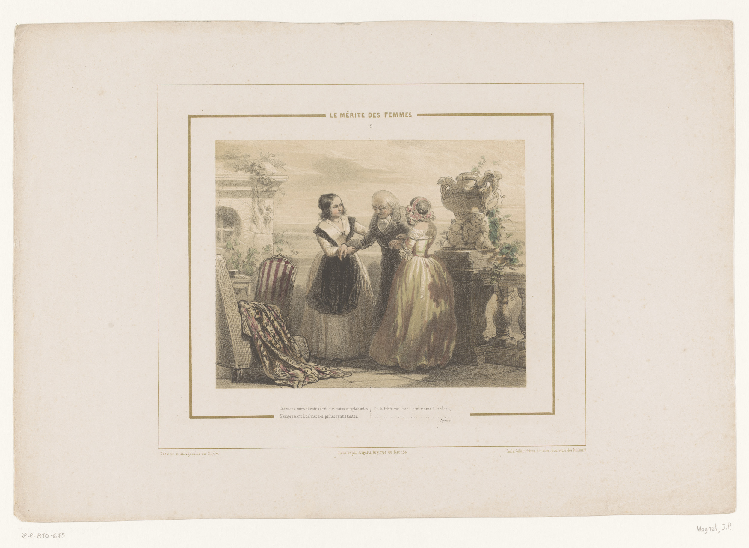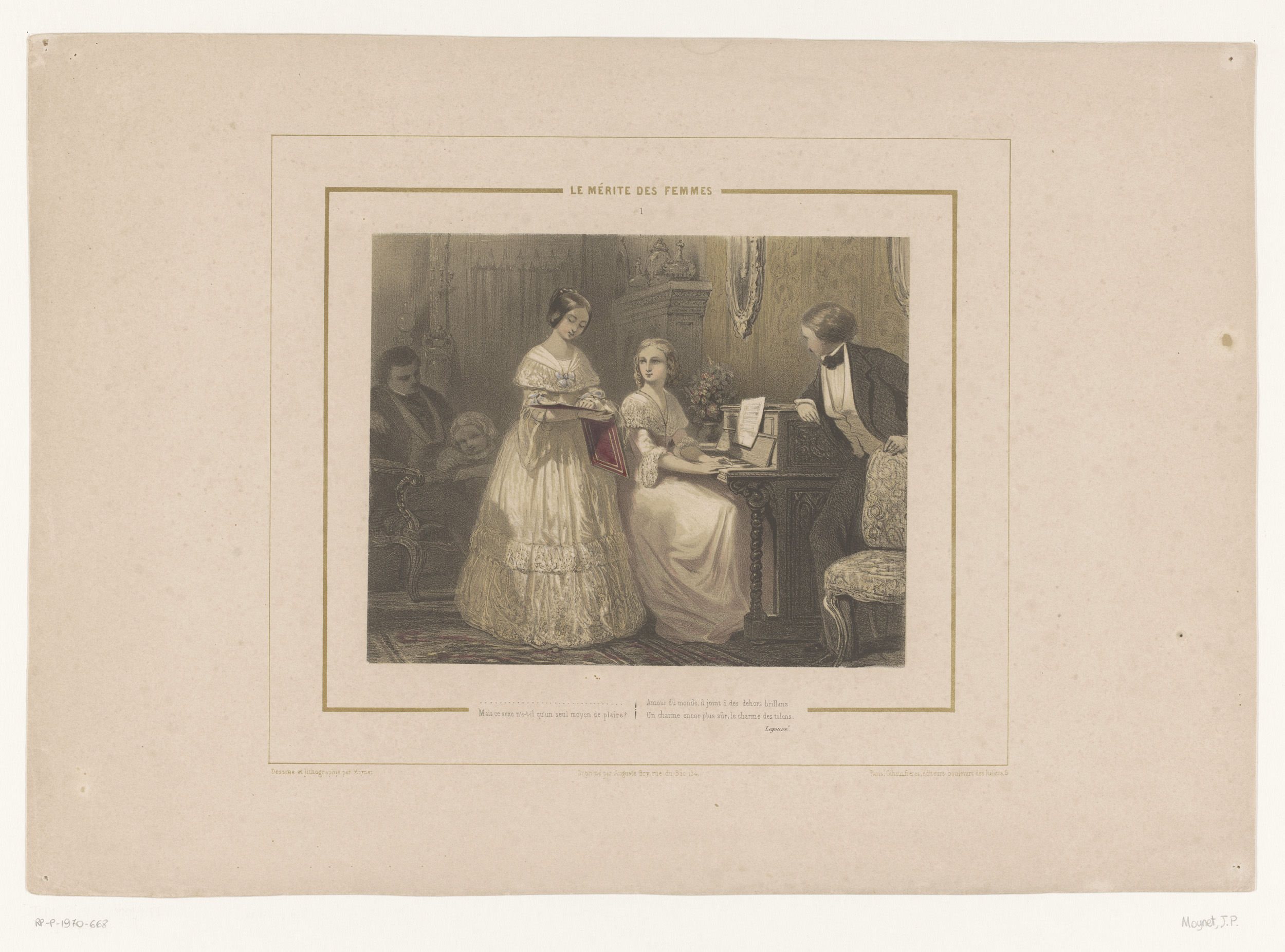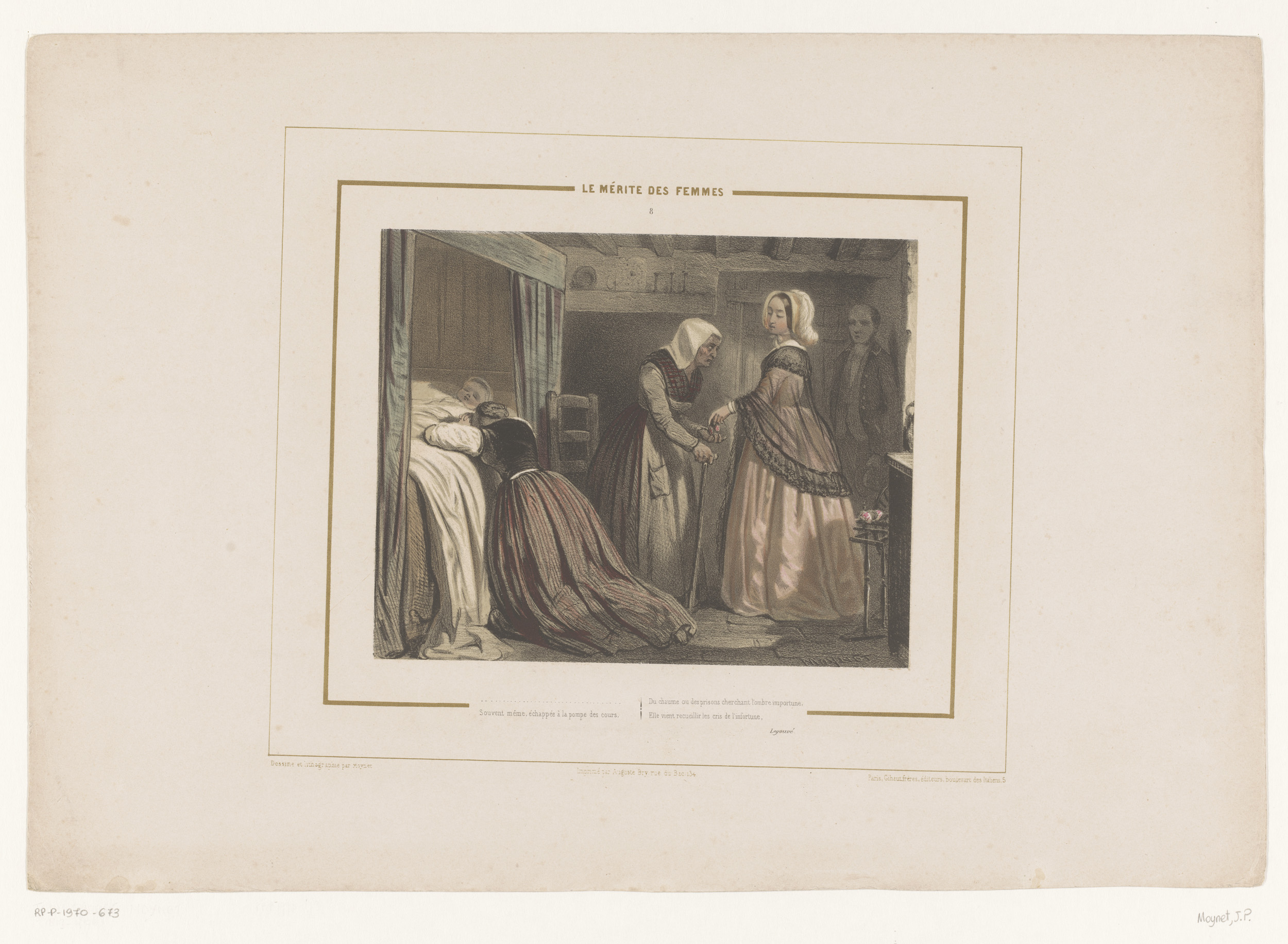 Vrouw wijst andere vrouw op passage in 'Le mérite de...