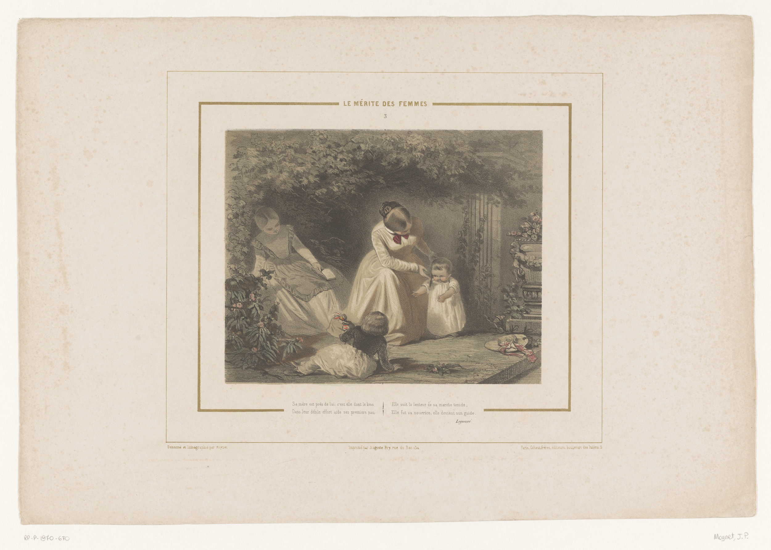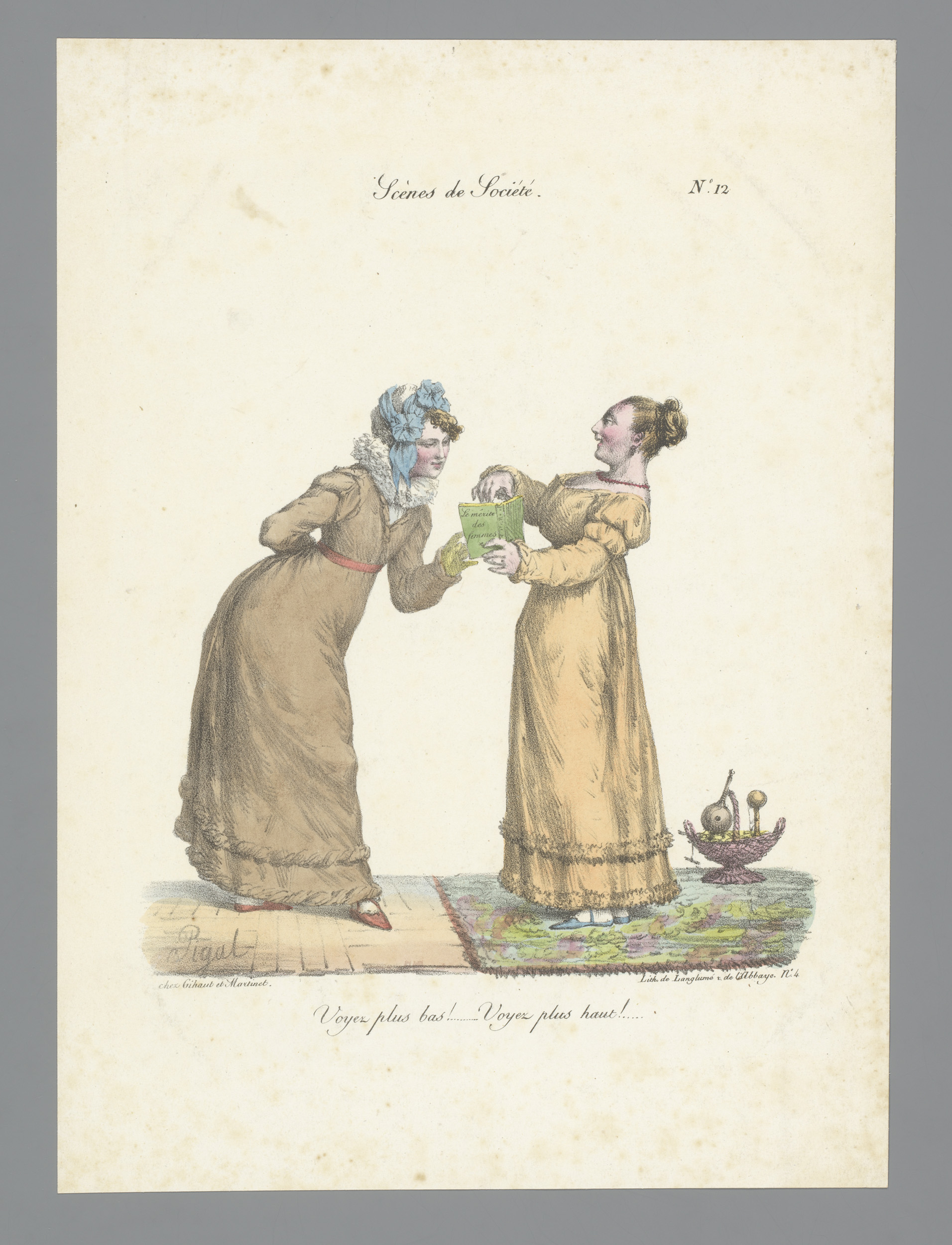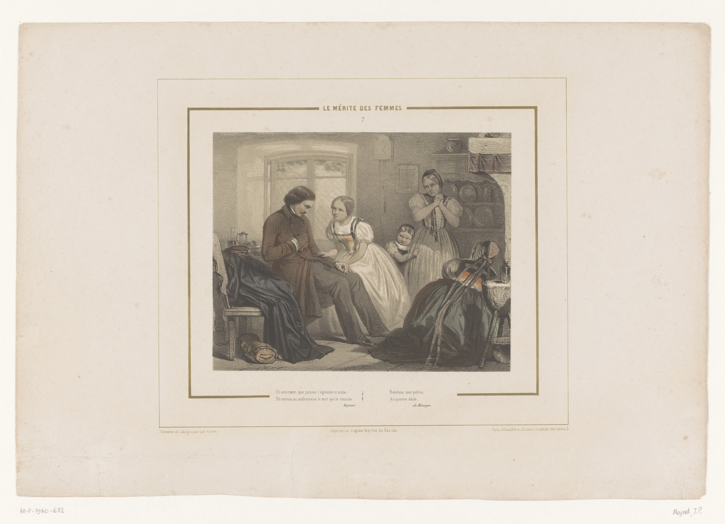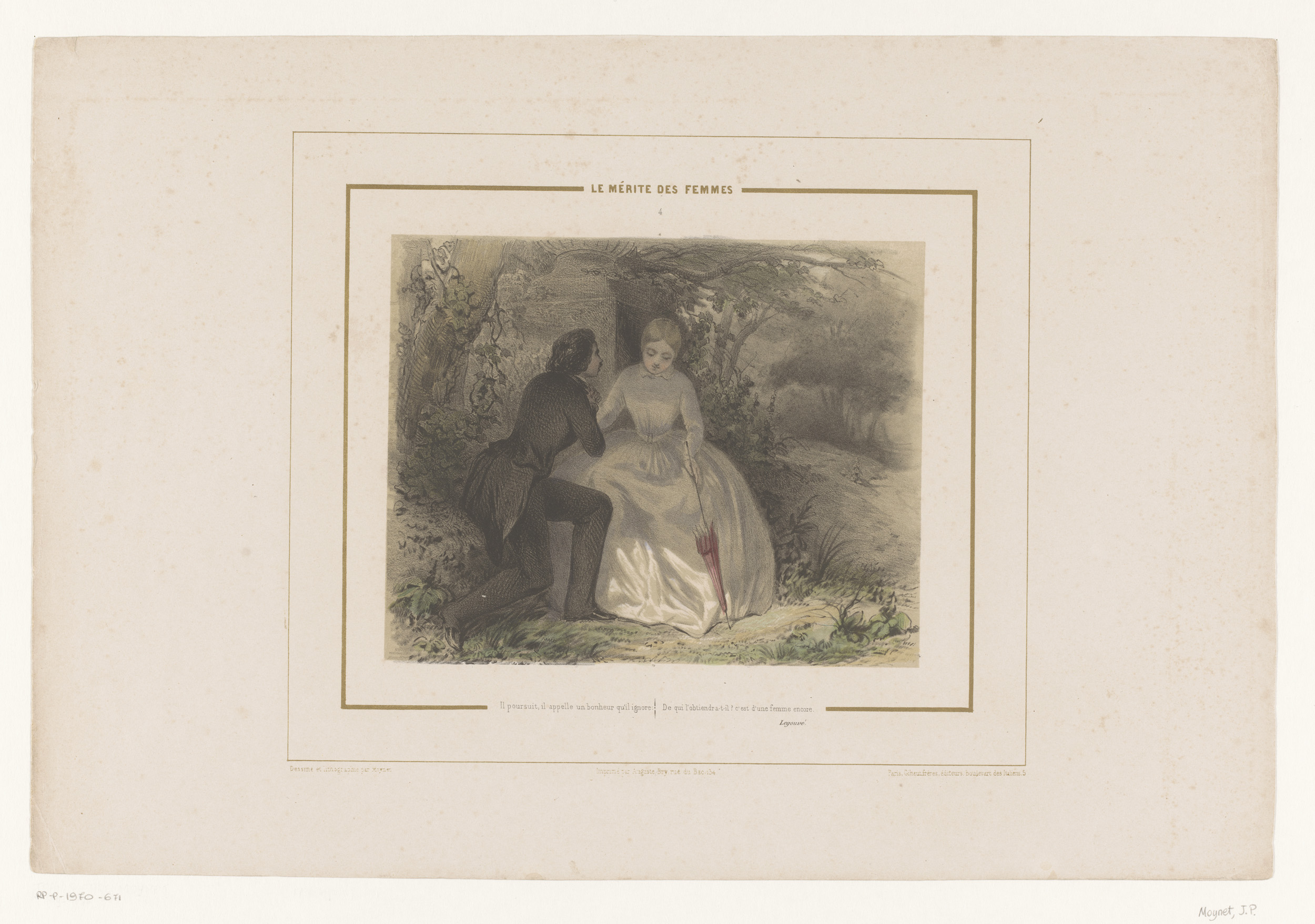 Vrouw wijst andere vrouw op passage in 'Le mérite de...