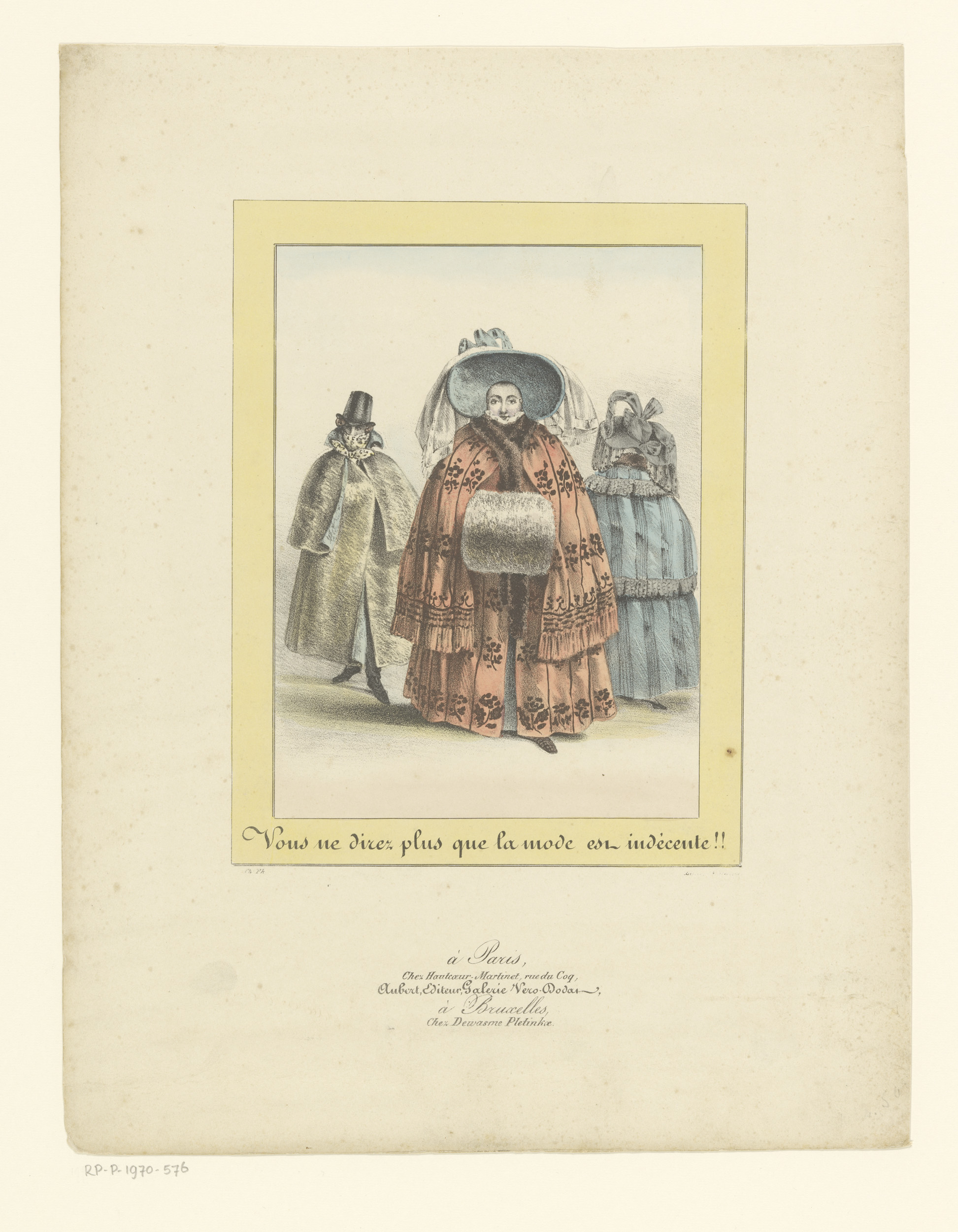 Vrouw in cape wordt door man in lange jas de weg gew...