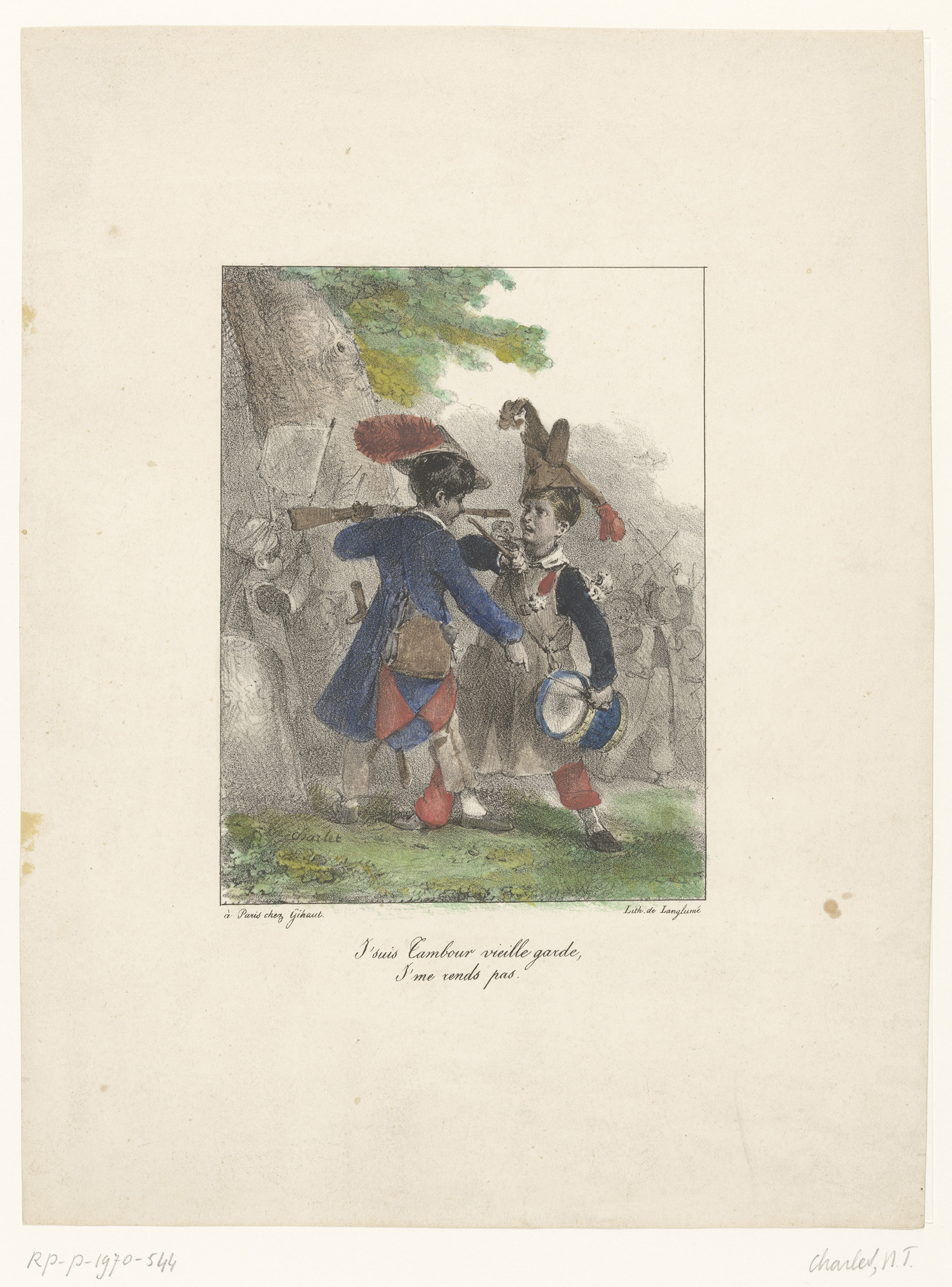 Twee jongens spelen soldaat en maken ruzie over een ...