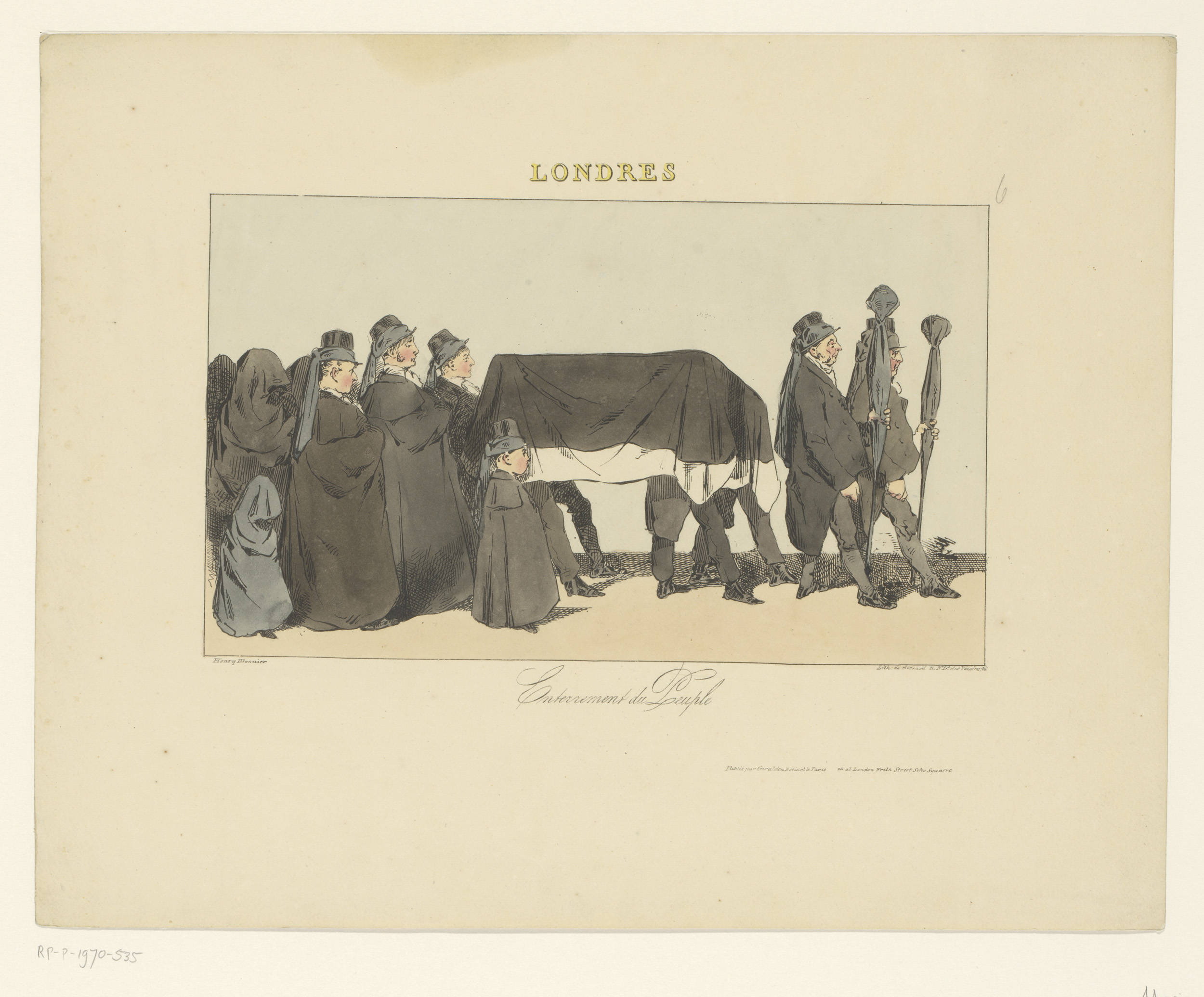 Jonge vrouw wordt naar een koets gebracht door de Dood