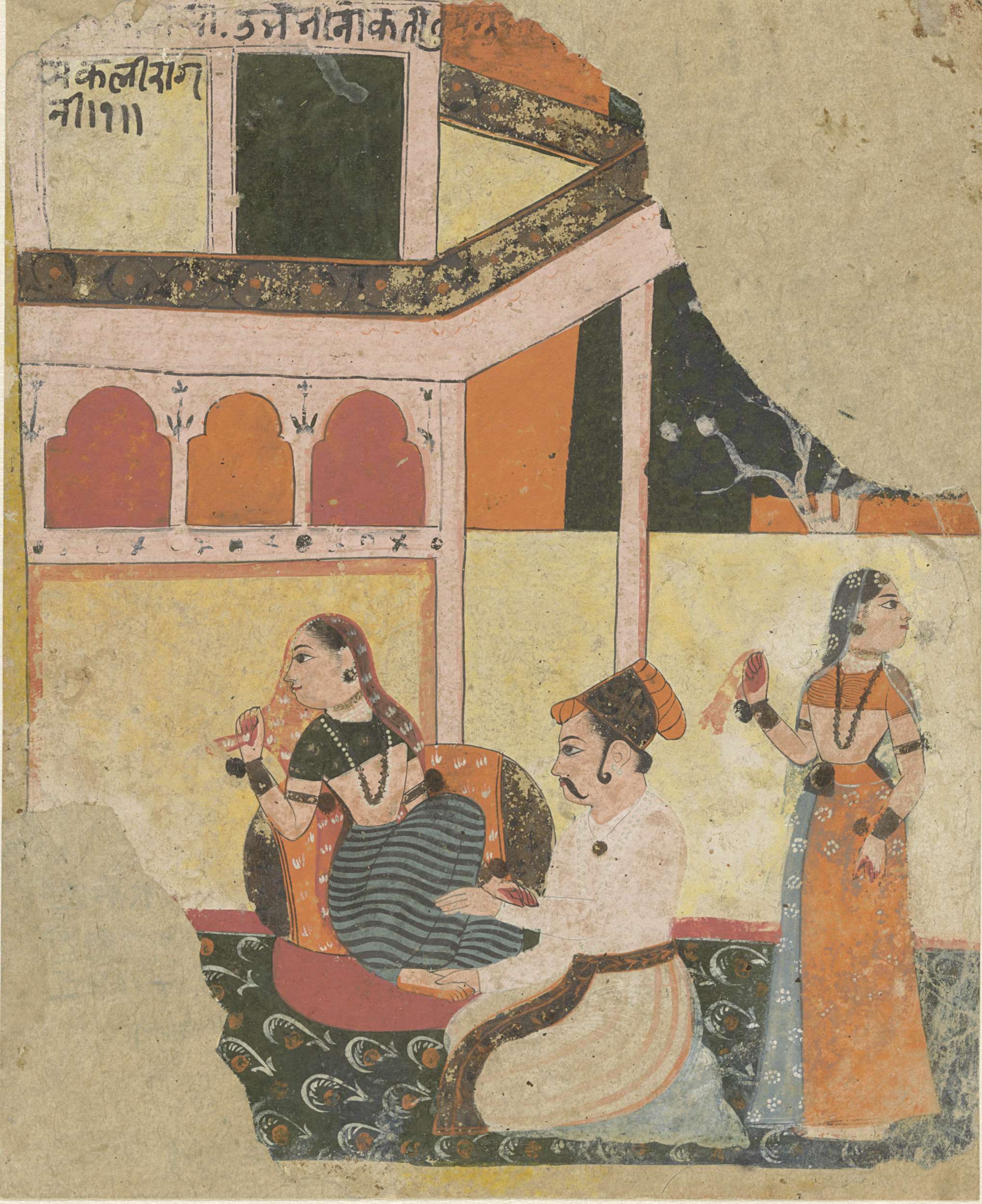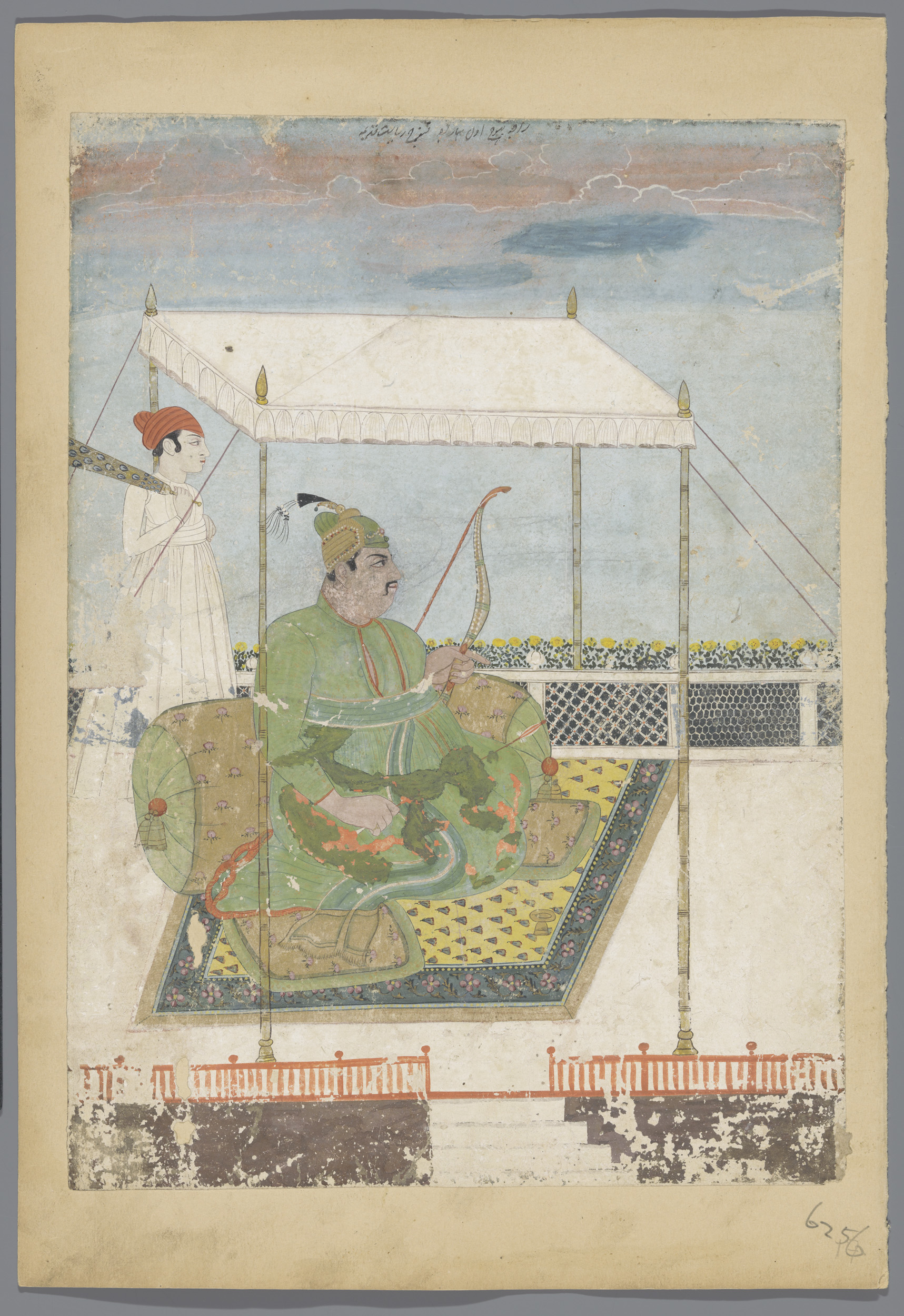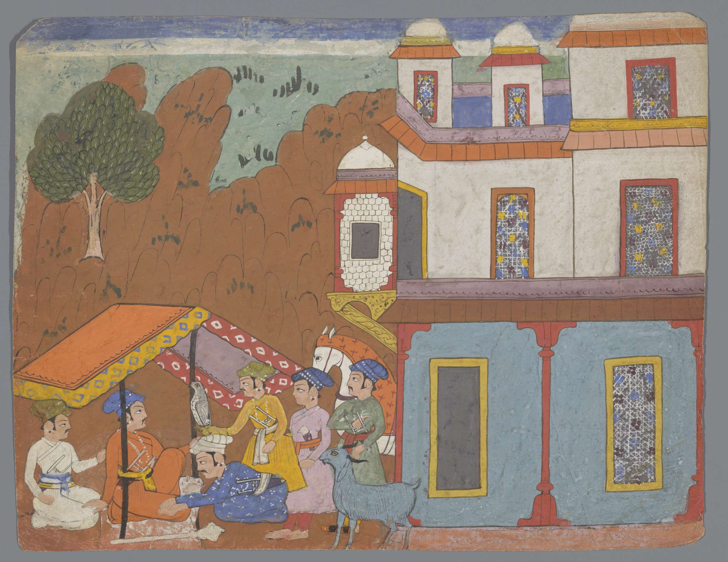 Een hindoe-vorst onder een baldakijn (Raja Bhoj?)
