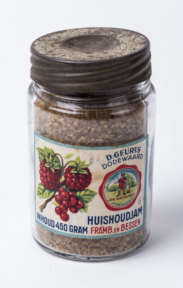 Jampot van glas met metalen schroefdeksel afkomstig ...