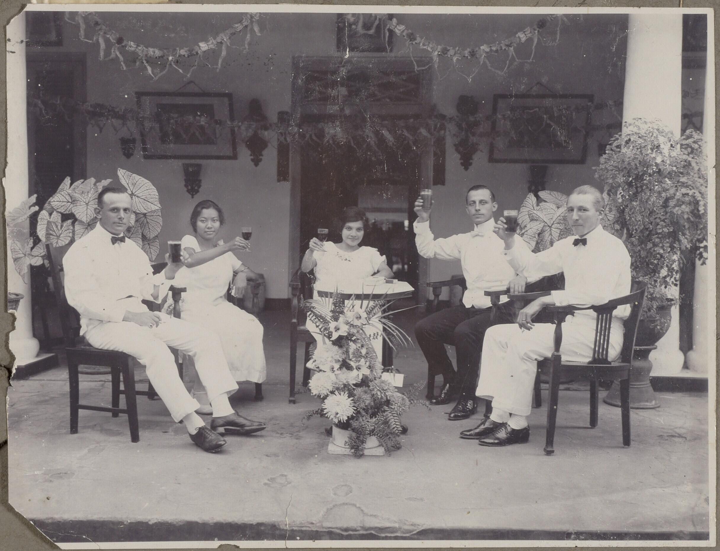 Nederlands-Indisch gezelschap brengt een toast uit o...