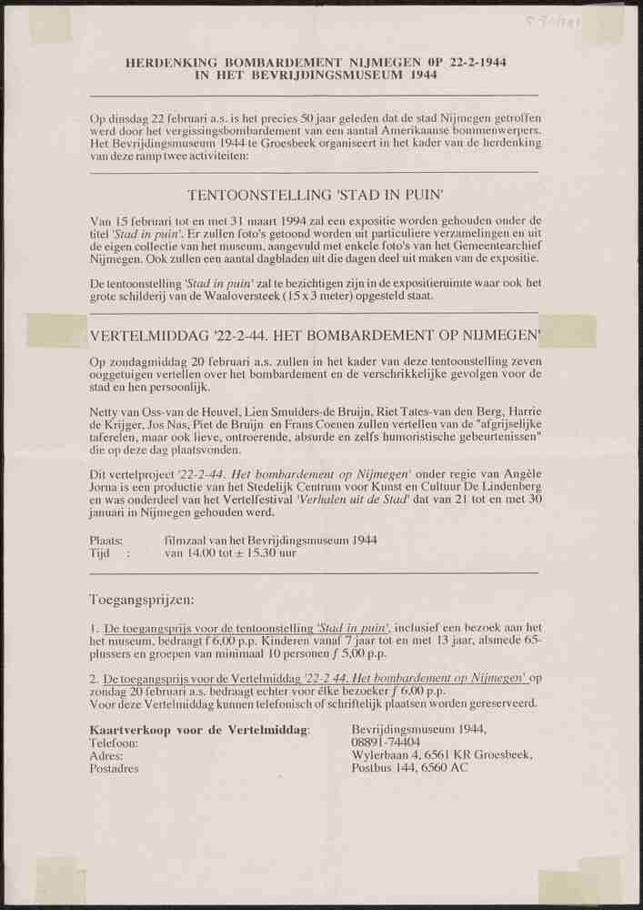 Affiche: Herdenking bombardement Nijmegen op 22-2-19...