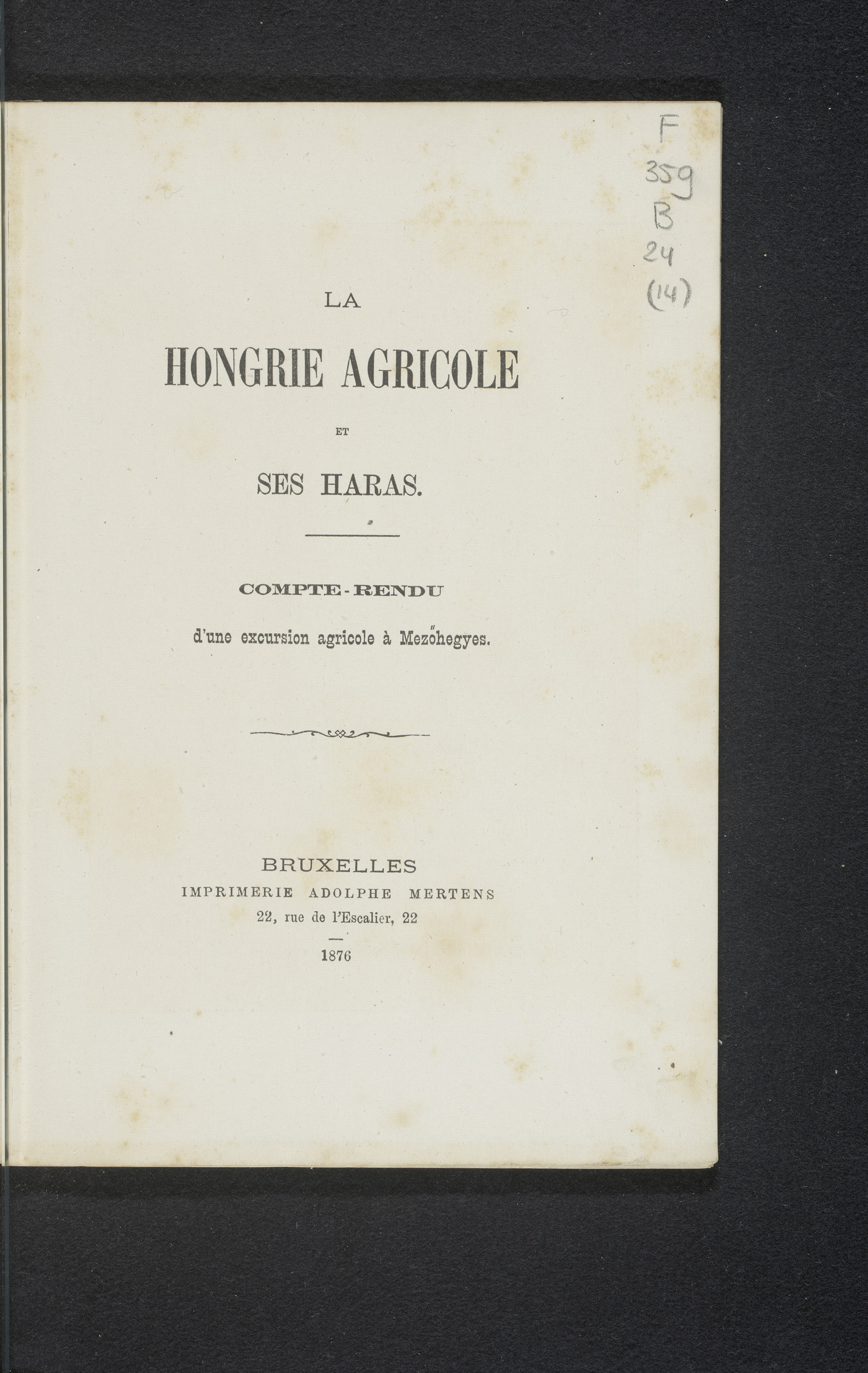 La Hongrie agricole et ses haras : compte-rendu d'un...