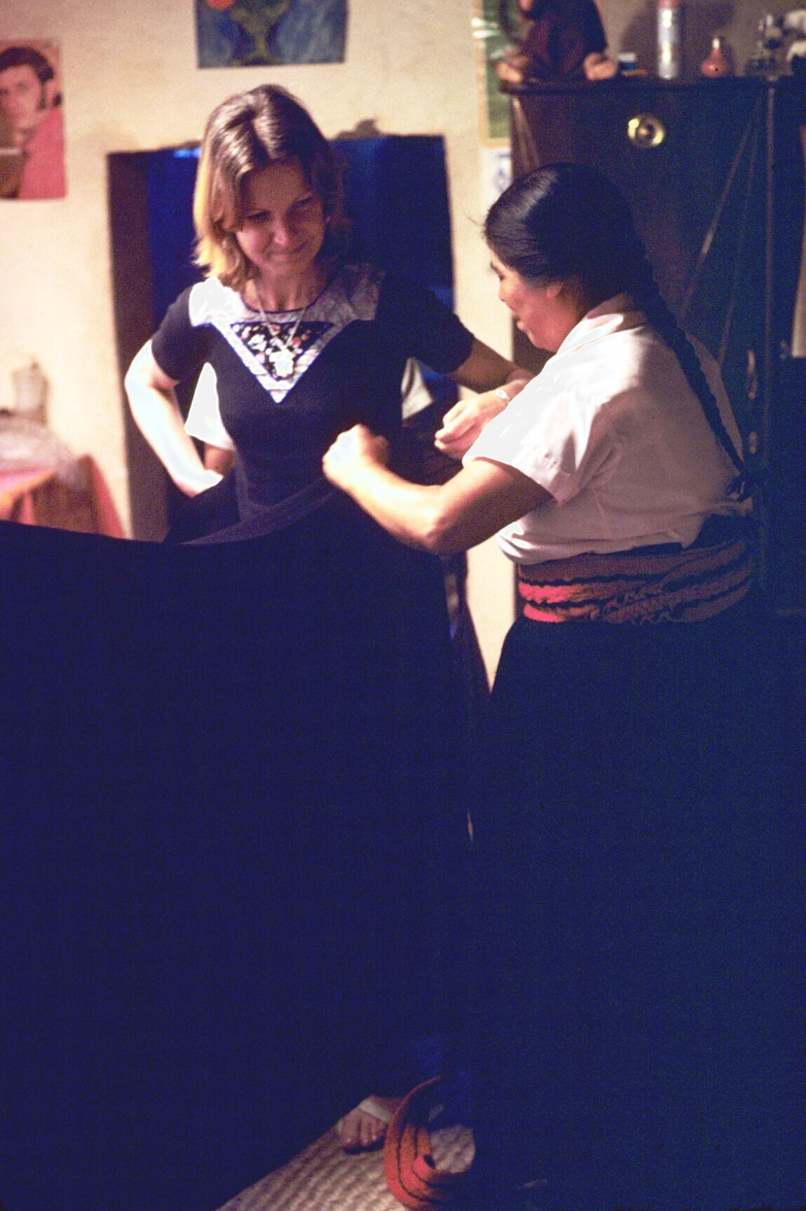 Paula Leyenaar wordt gekleed in dracht van Hueyapan
