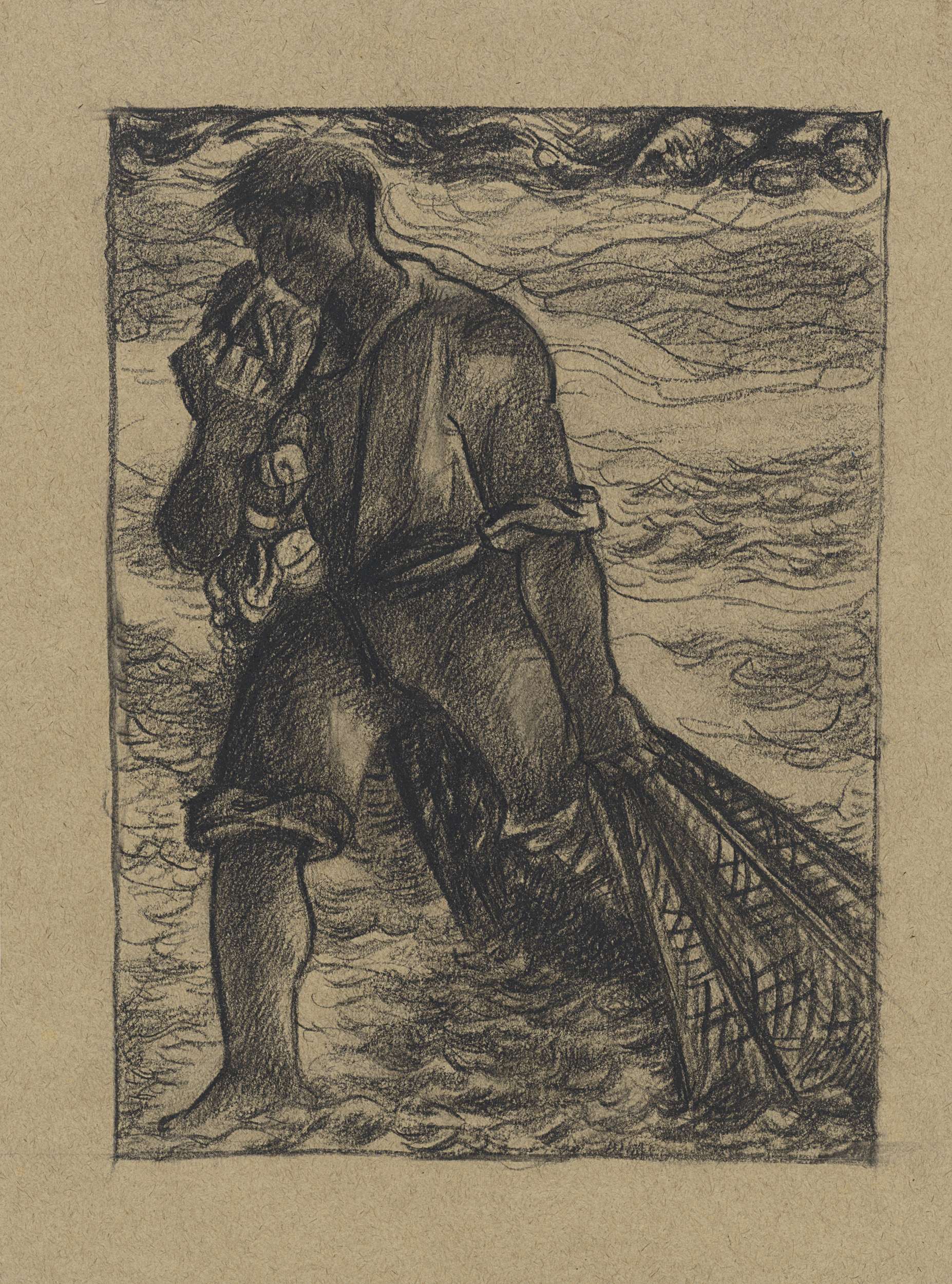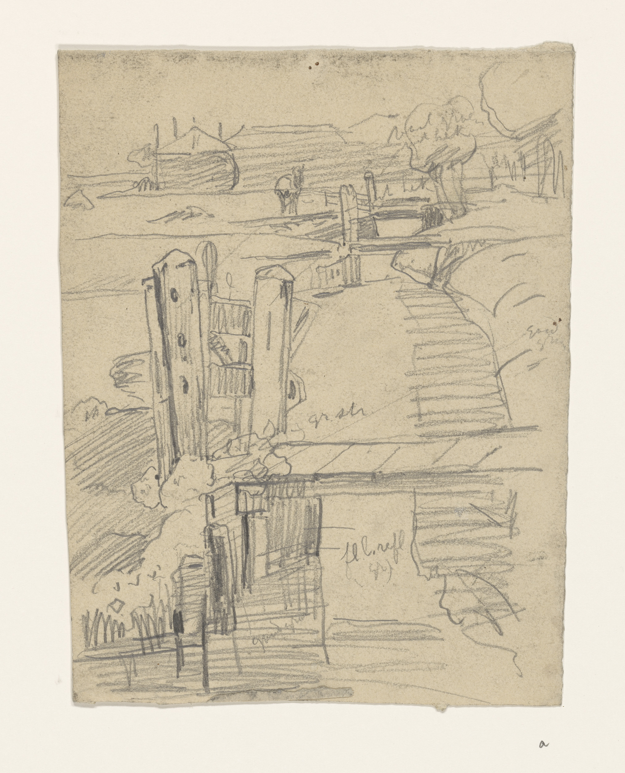 Schets van twee mannen bij een ladder