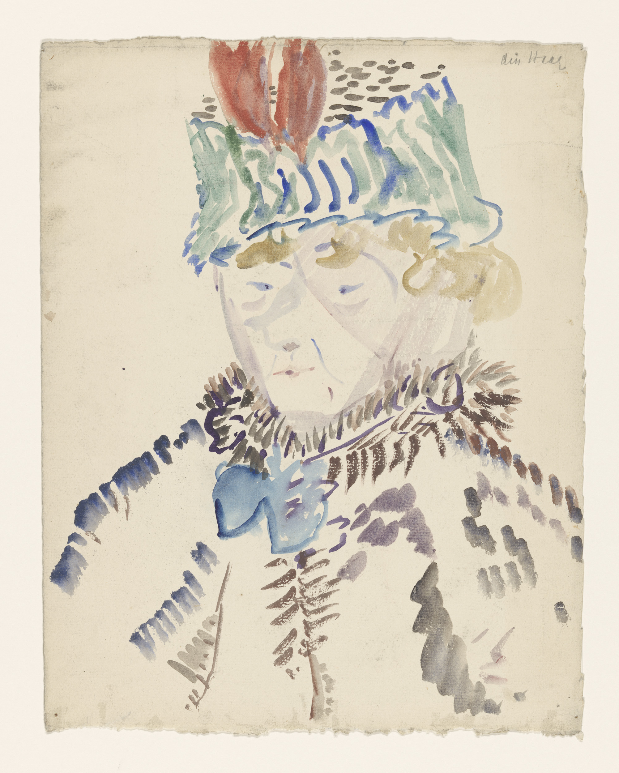 Vrouw in bontkraag en muts