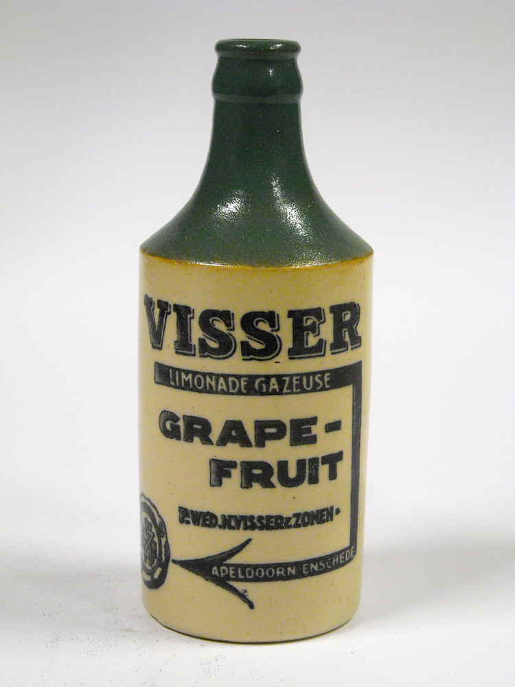 Frisdrankkruik met opschrift: Visser limonade gazeus...
