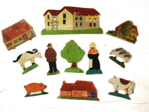 Speelgoed van hout voorstellende boerderij met mense...