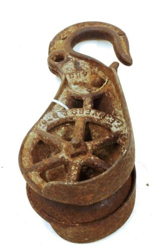 Katrol van metaal als onderdeel van een hijstoestel ...