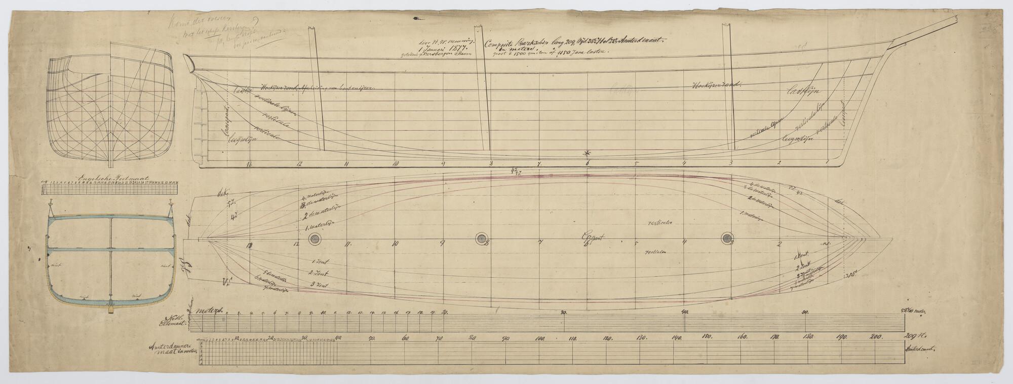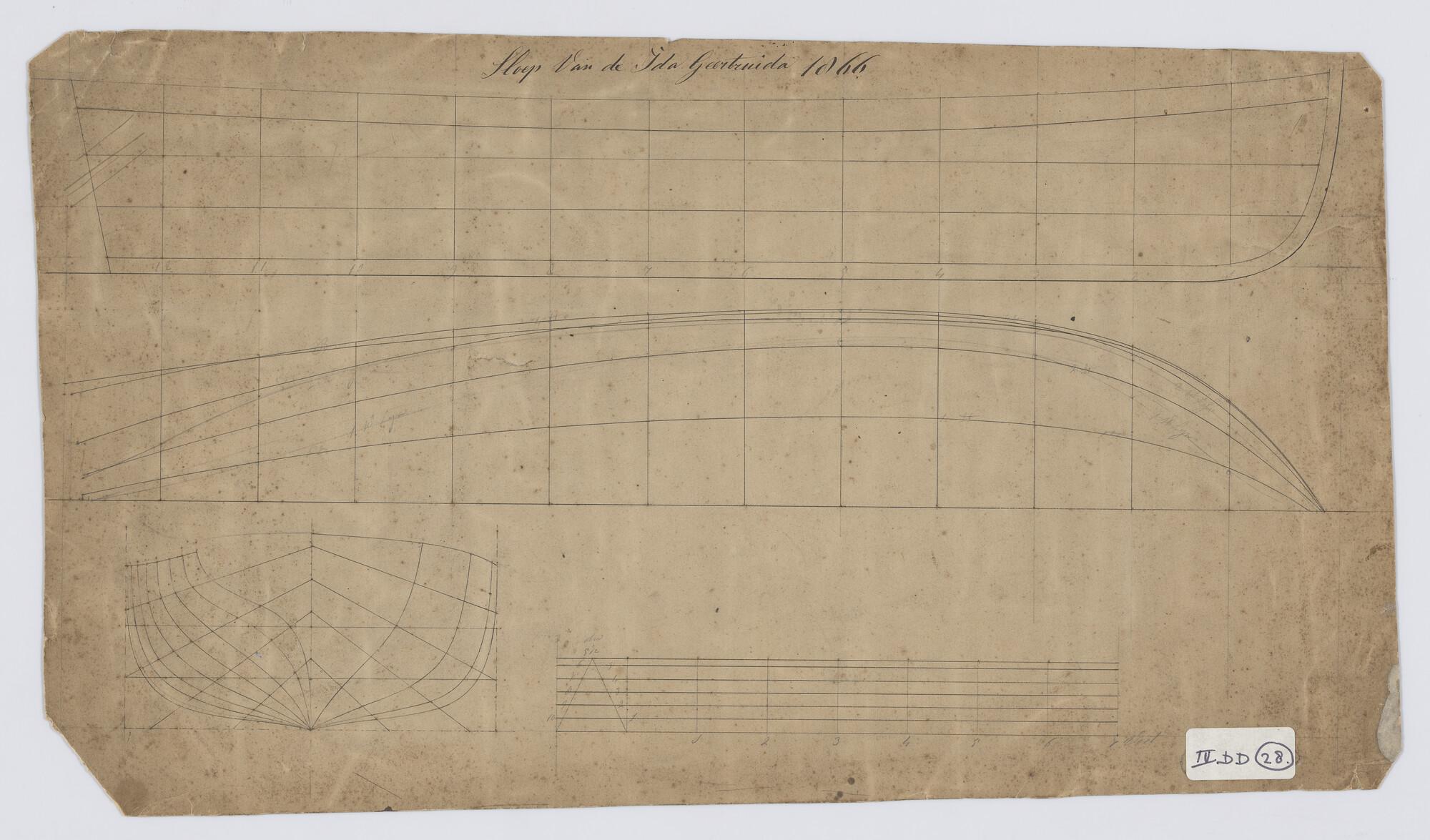 Lijnenplan van de sloep van de brik 'Ida Geertruida'