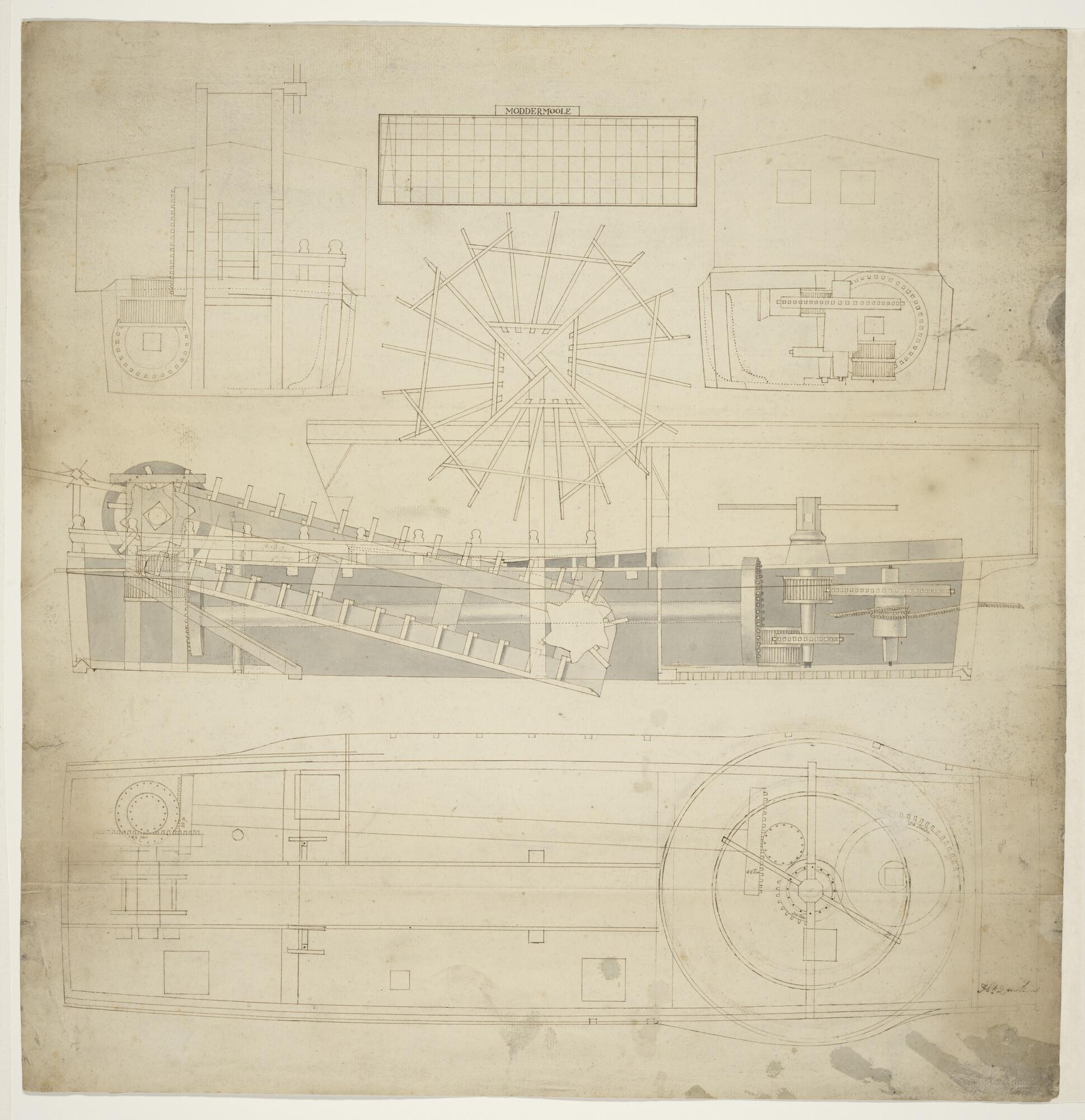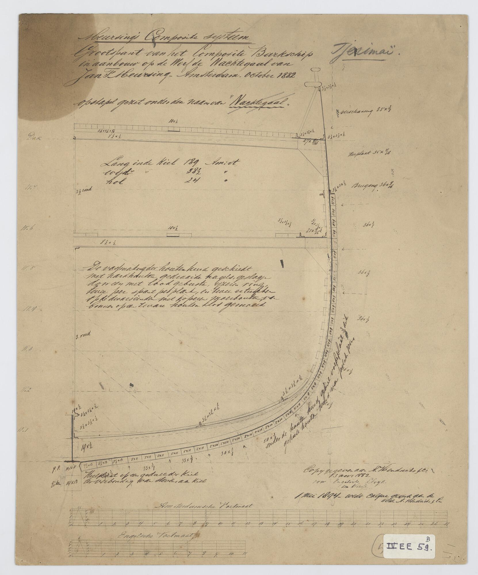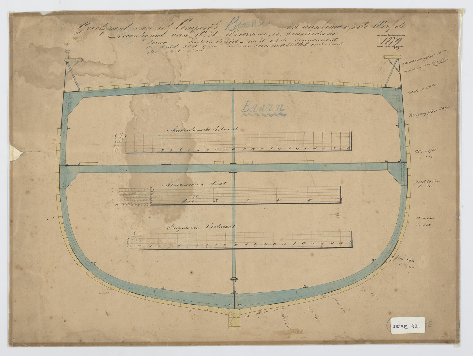 Zijaanzicht, lijnenplan van de ijzeren brik 'Astrea'