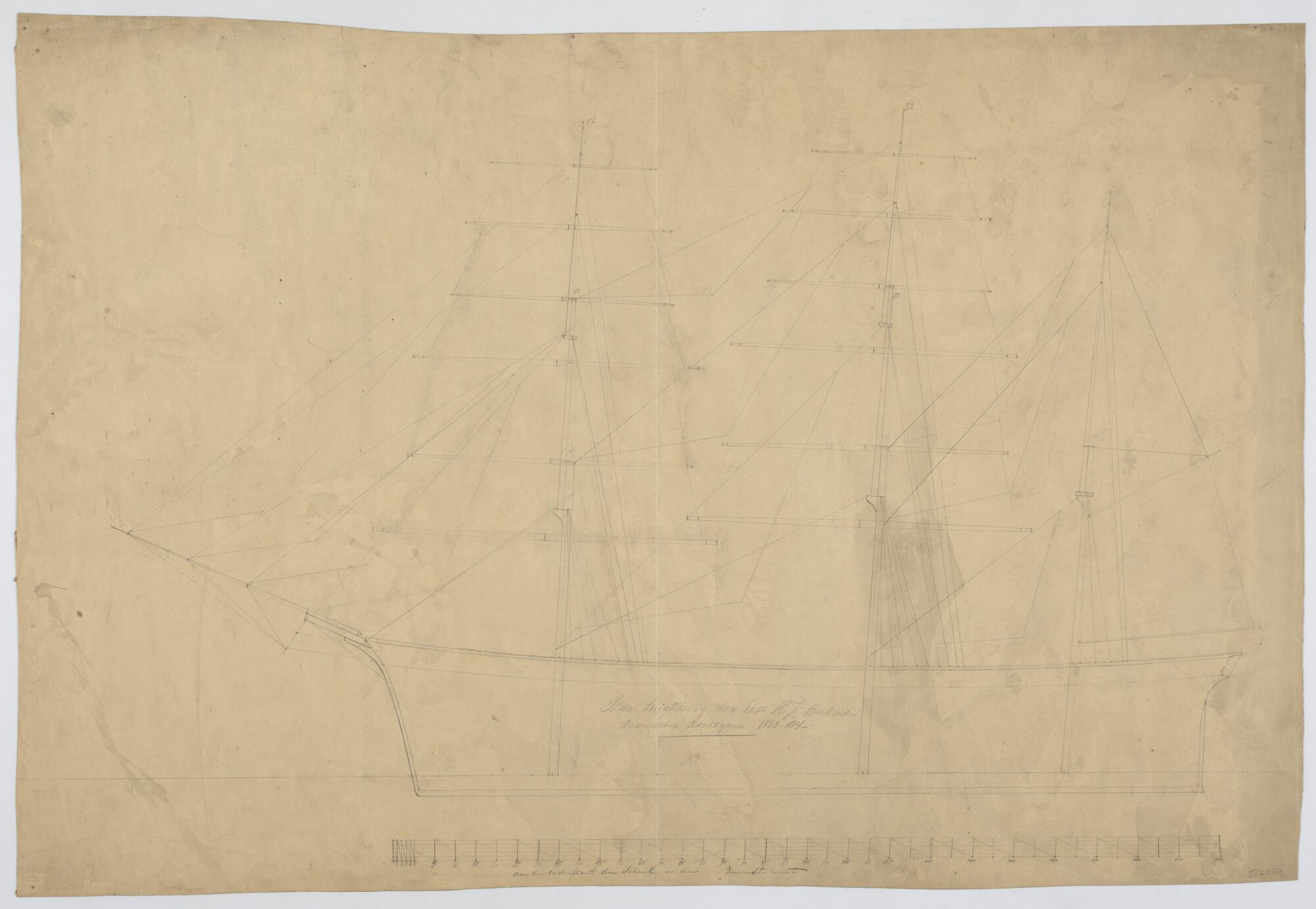 Tuigplan van het klipperbarkschip 'Kersbergen'